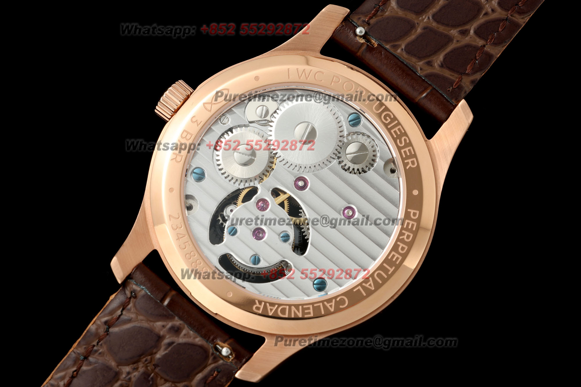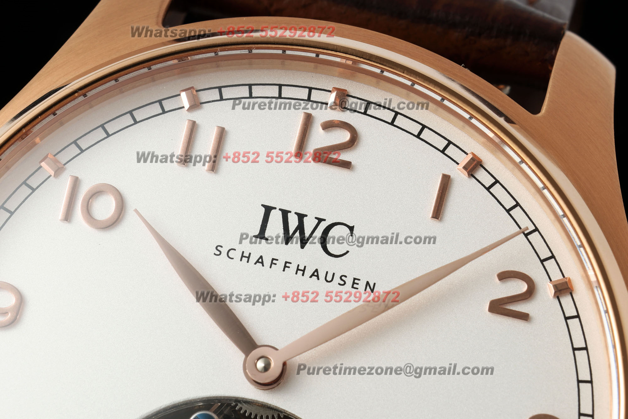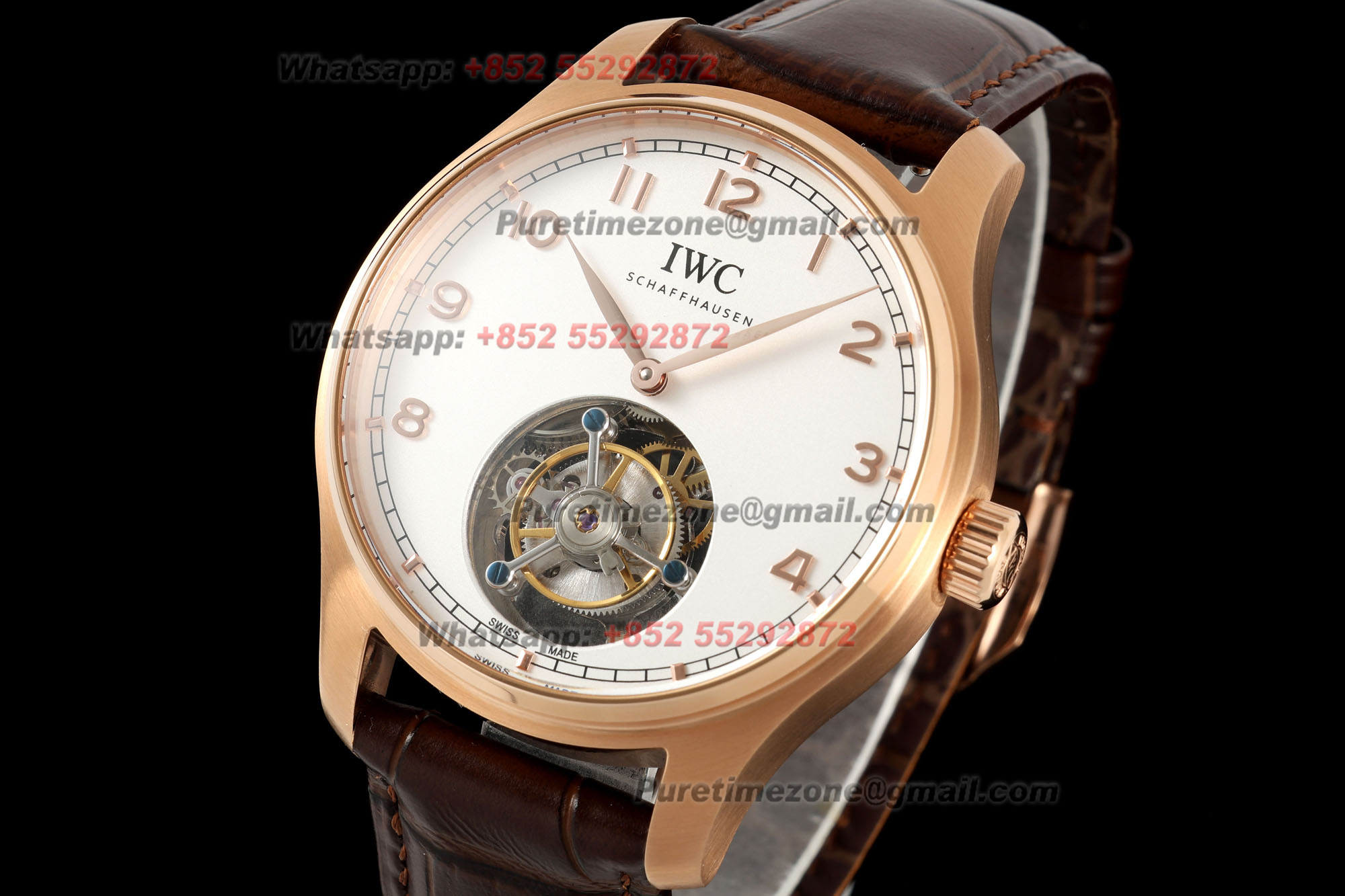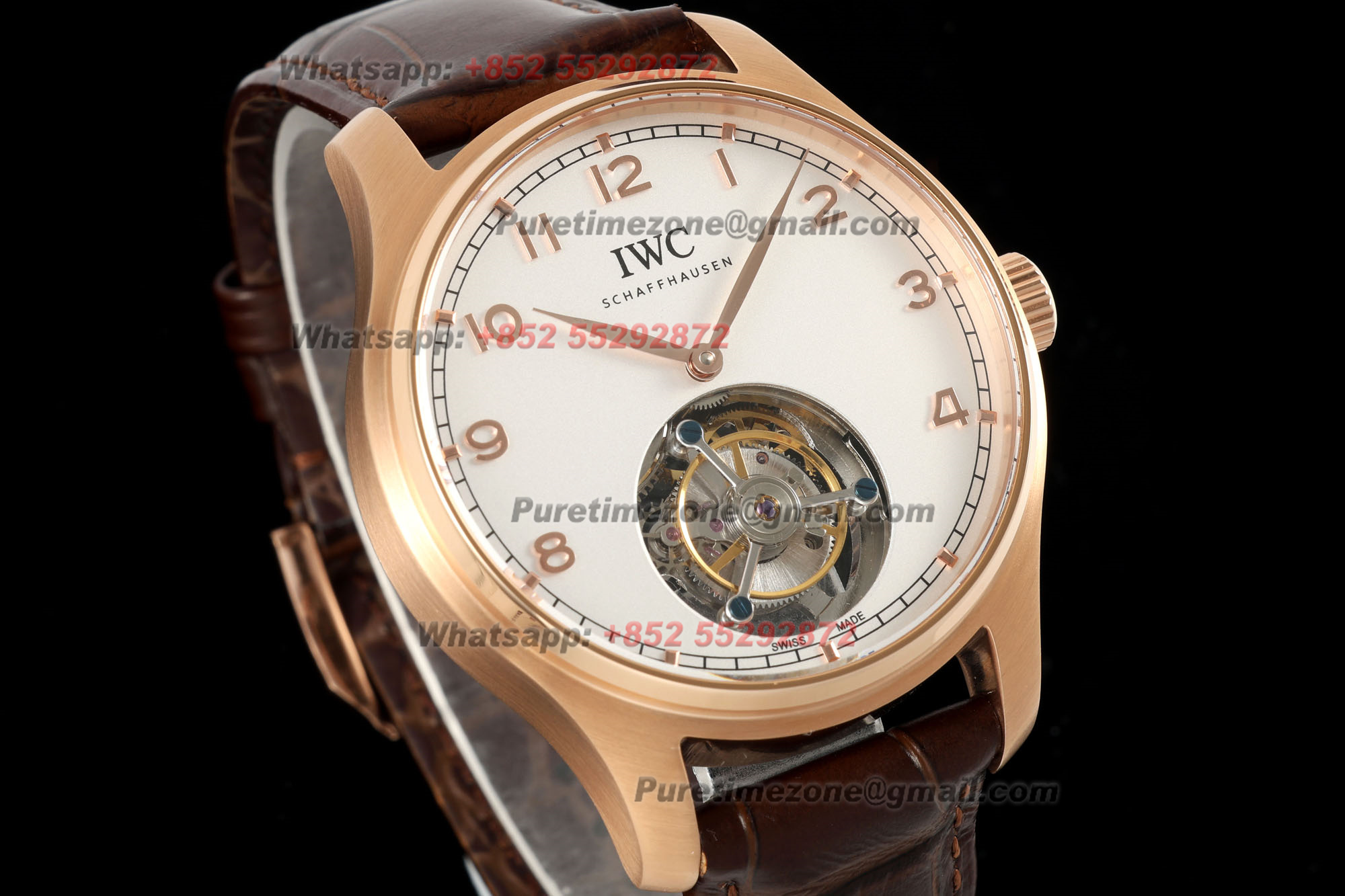 Portugieser Tourbillon Wind Mens Watch RMSF Best Edition 40mm RG White Dial Brown Leather Strap