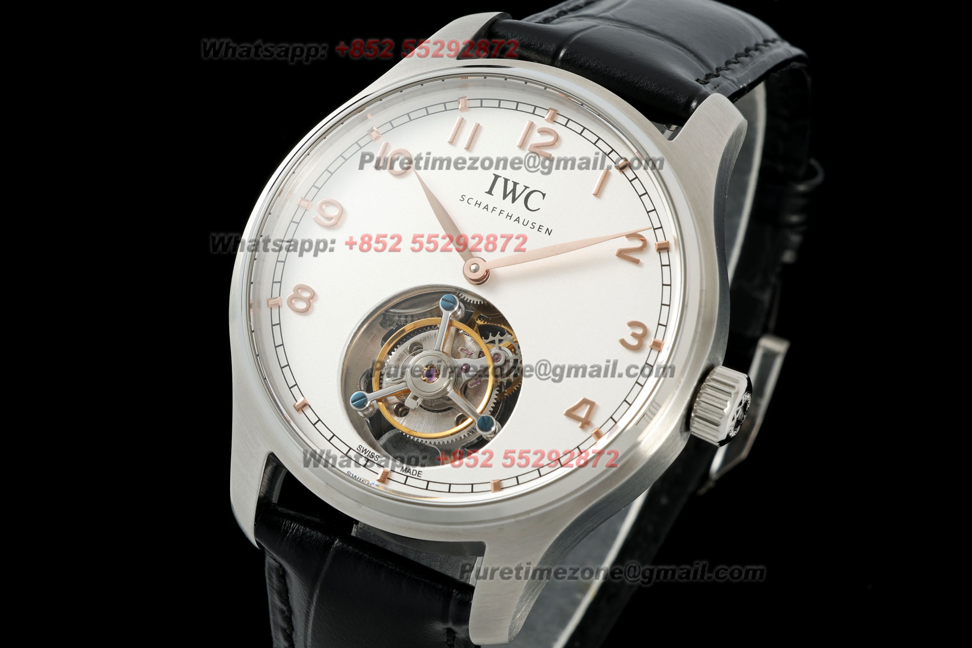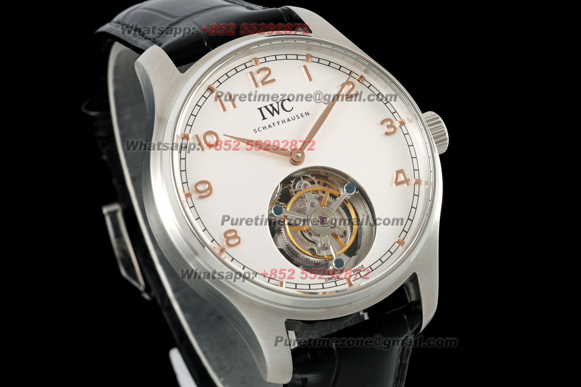 Portugieser Tourbillon Wind Mens Watch RMSF Best Edition 40mm White RG Dial Black Leather Strap