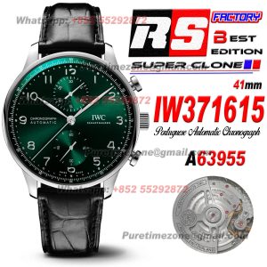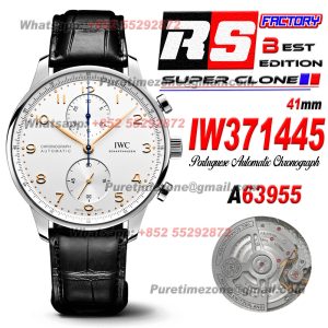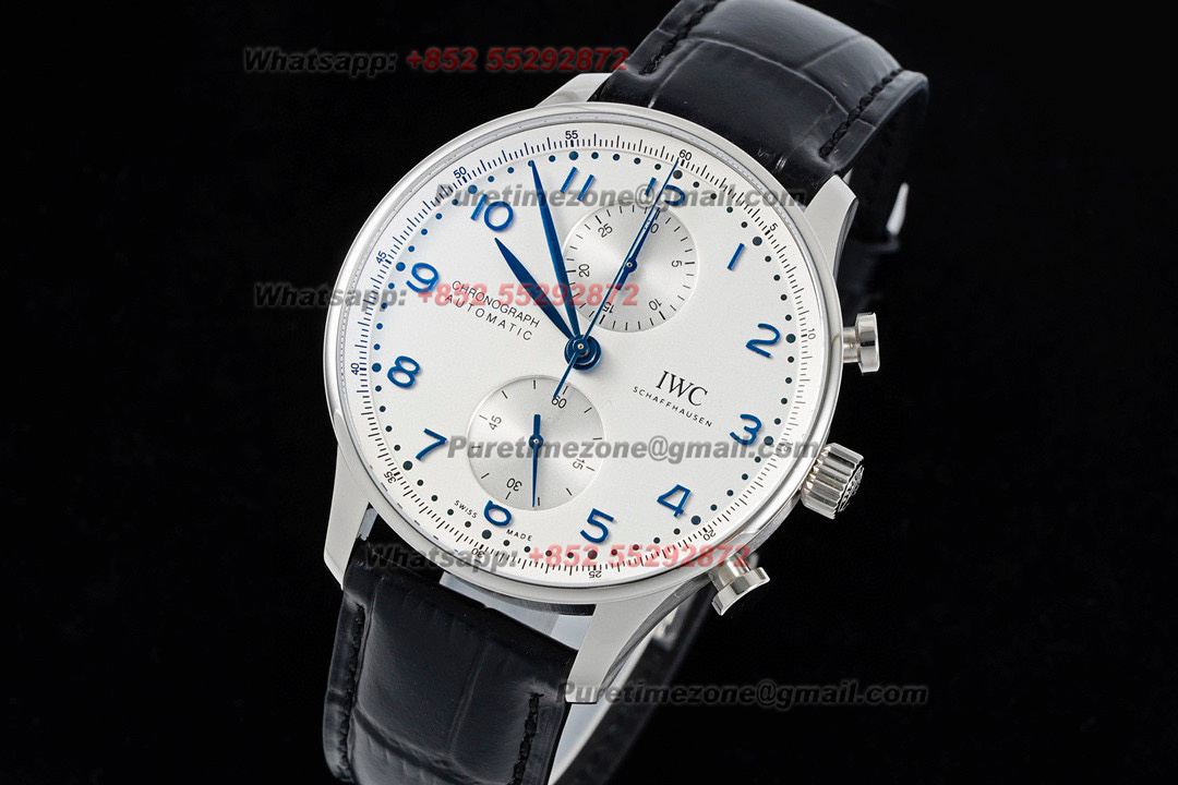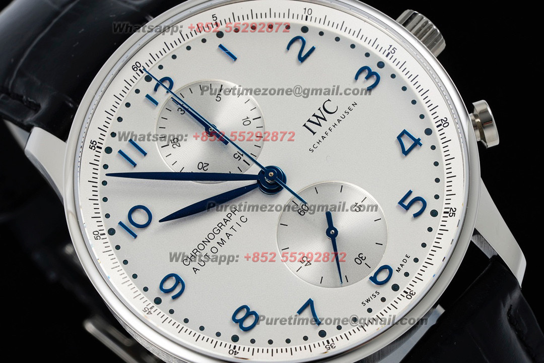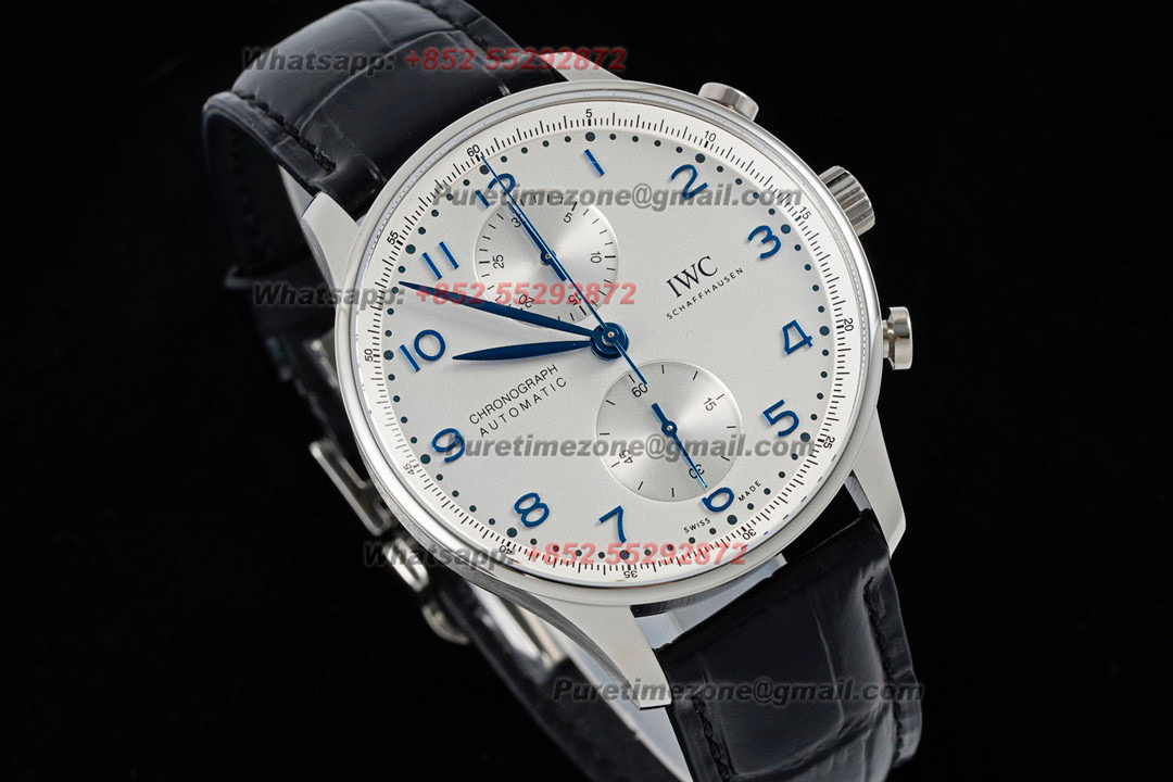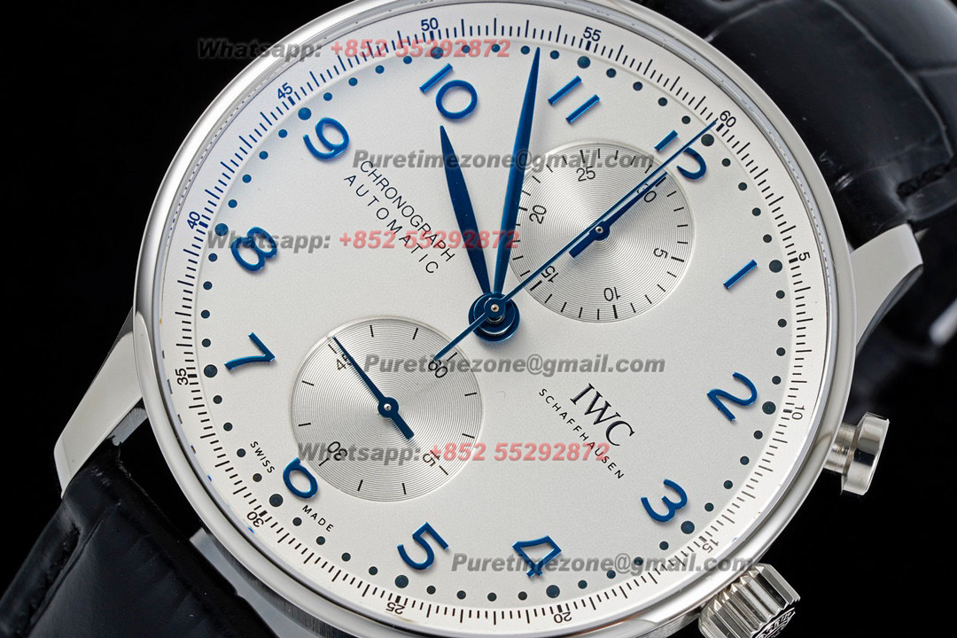 Portuguese Chronograph IW371446 Automatic Mens Watch Super Clone RSF 41 Silver Dial Black Leather Strap A7750