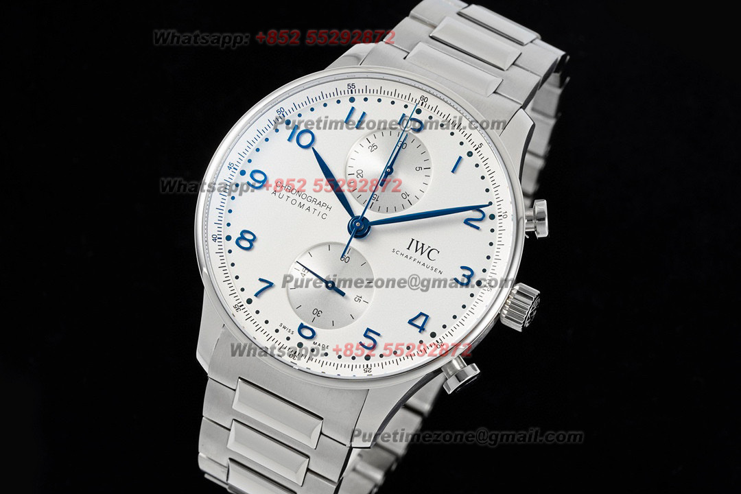 Portuguese Chronograph IW371617 Automatic Mens Watch Super Clone RSF 41 Silver Dial SS Bracelet A7750