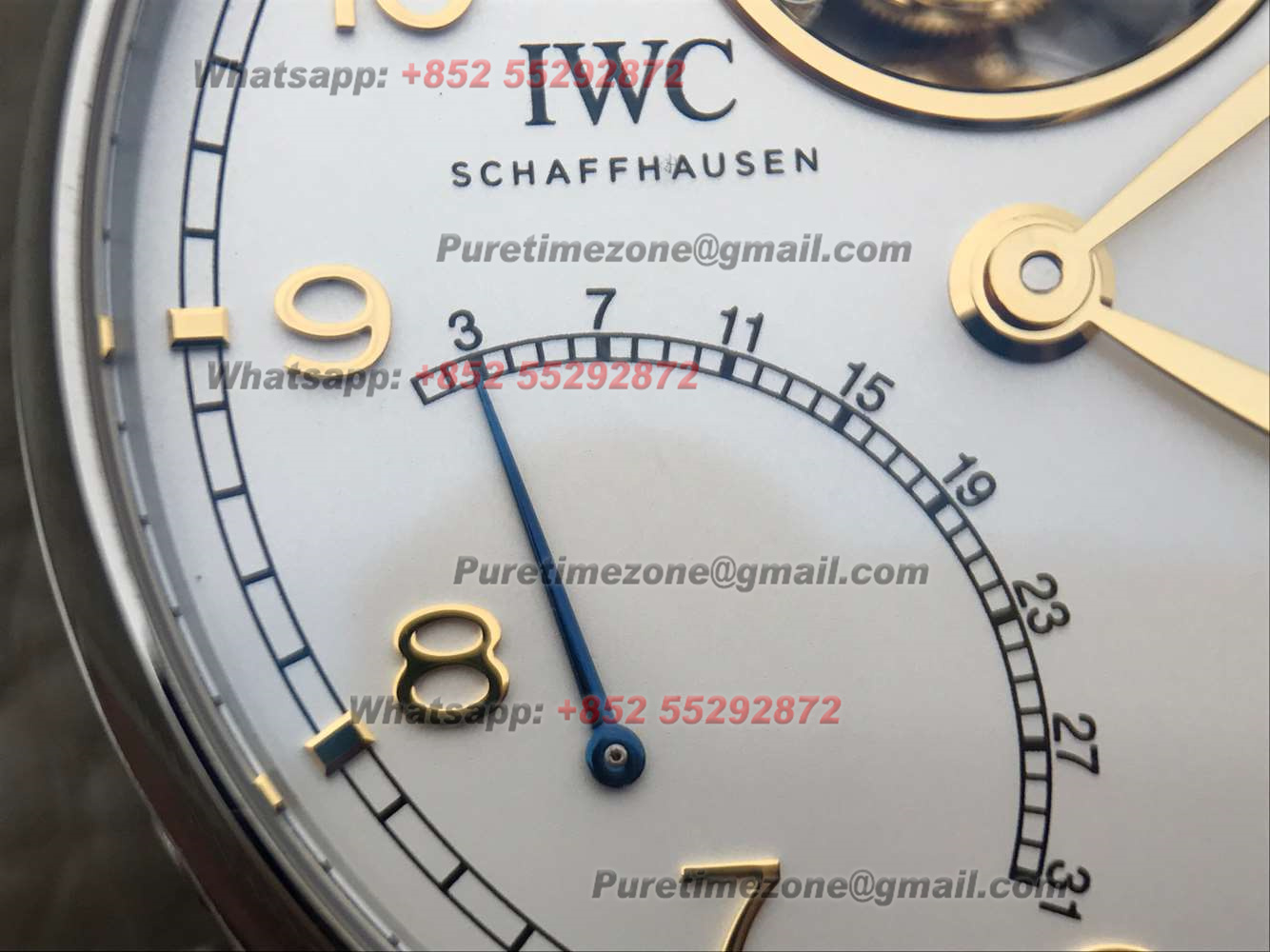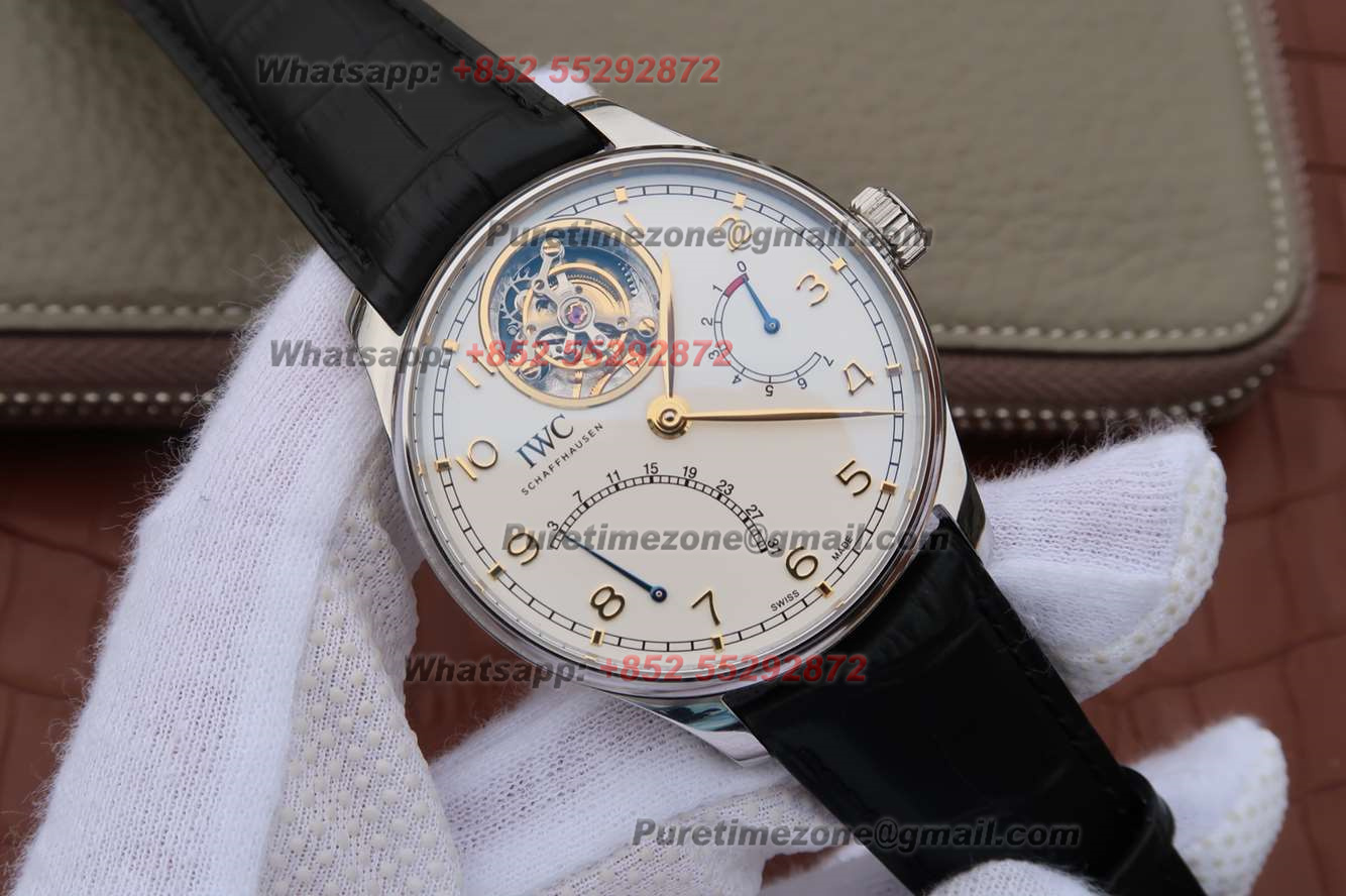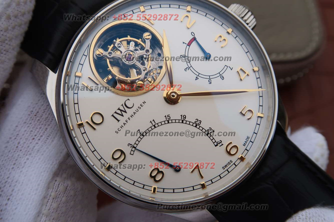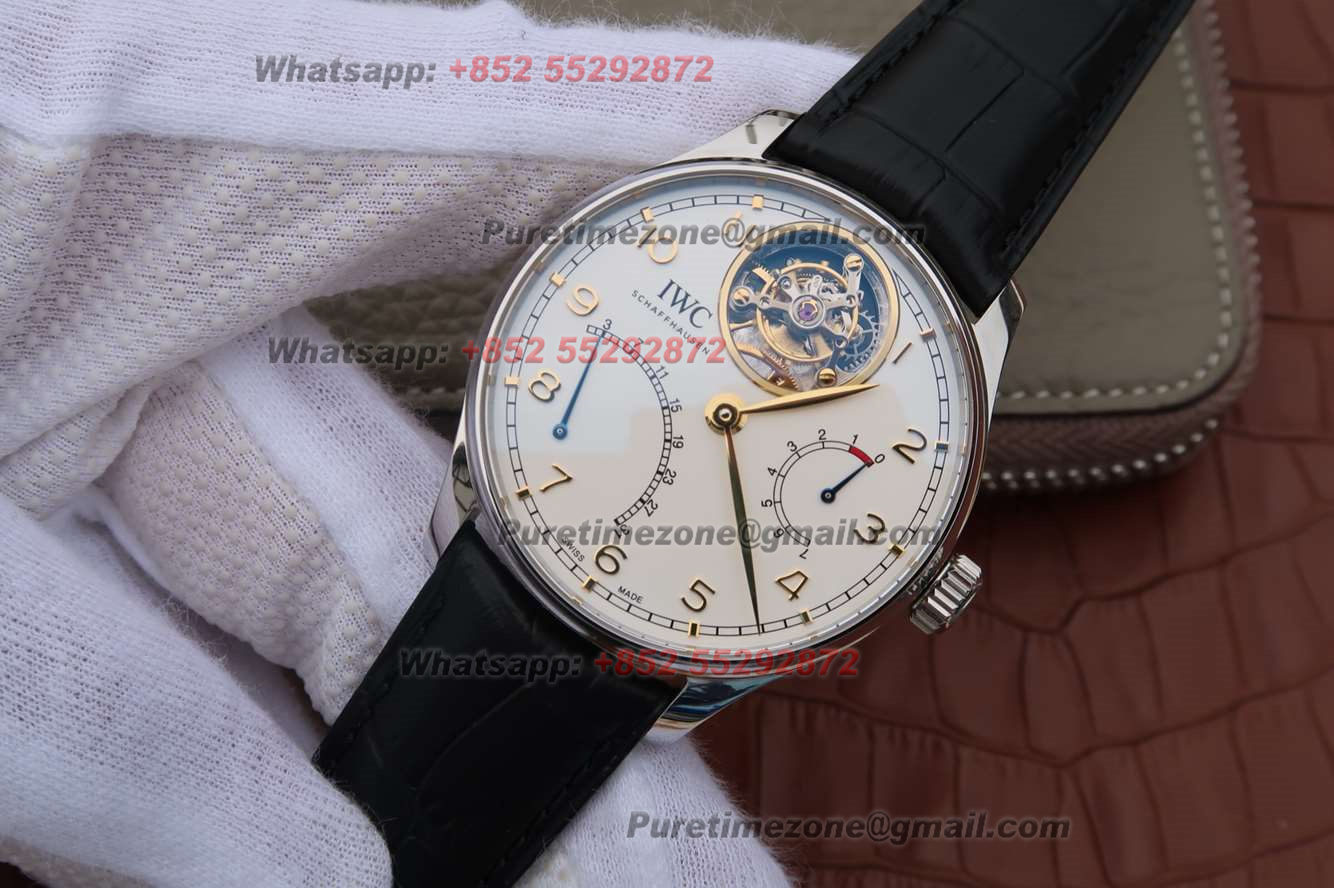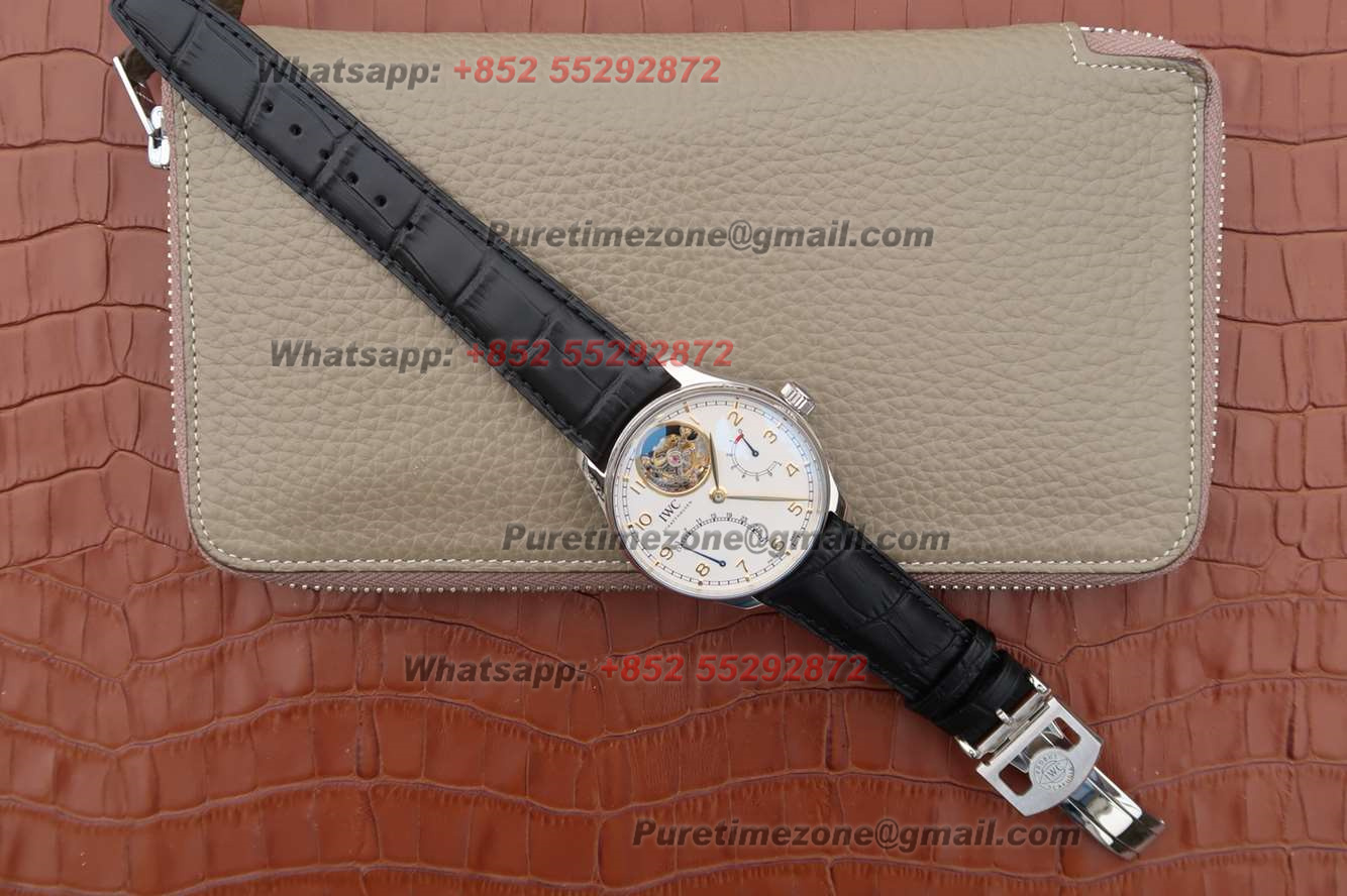 Portuguese Tourbillon IW504601 Mystere Retrograde Automatic Mens Watch Super Clone AZF White Dial Black Leather Strap