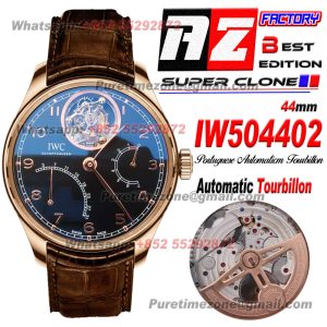Portuguese Tourbillon IW504402 Mystere Retrograde Automatic Mens Watch Super Clone AZF RG Black Dial Brown Leather Strap $1,500.00 $1,300.00