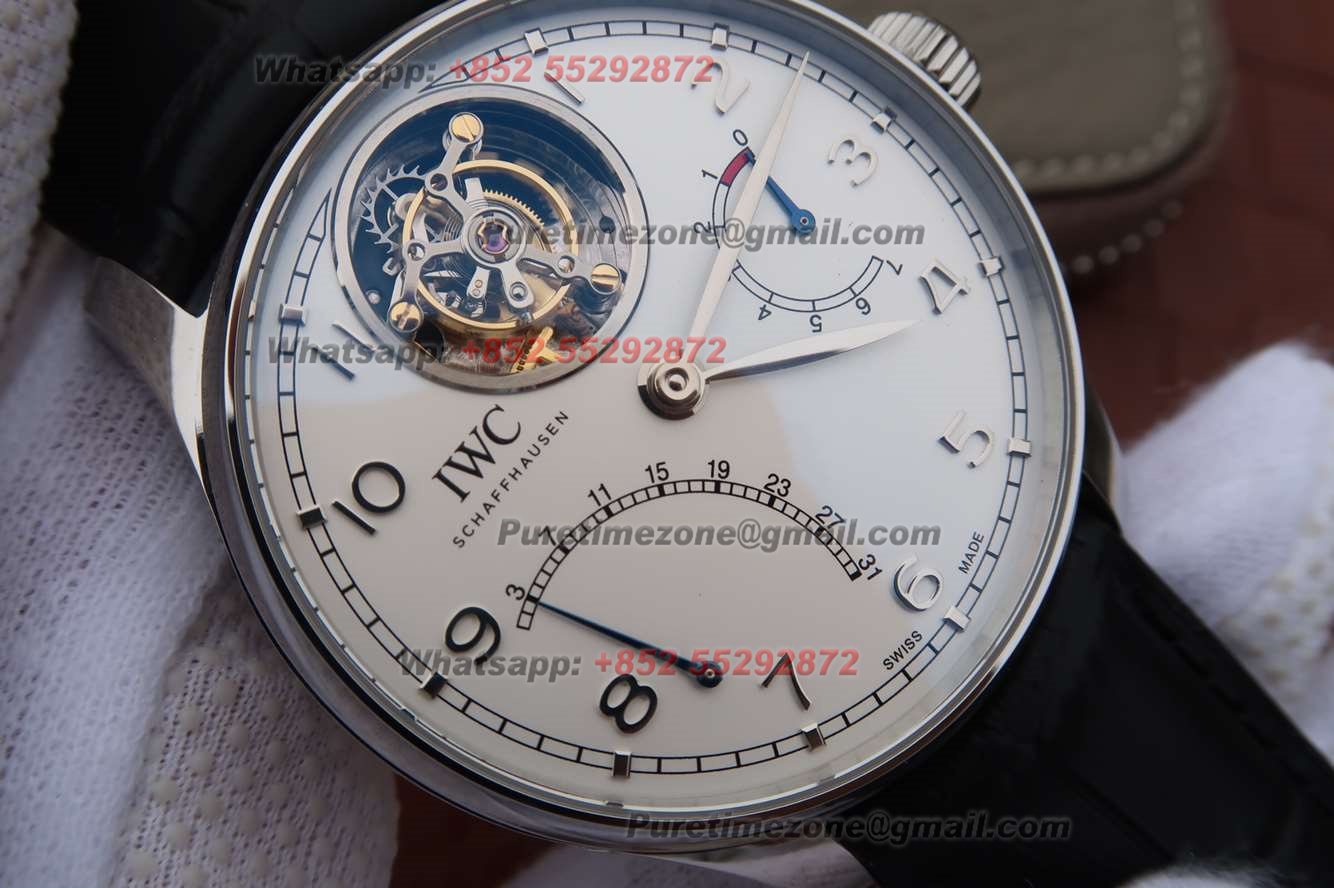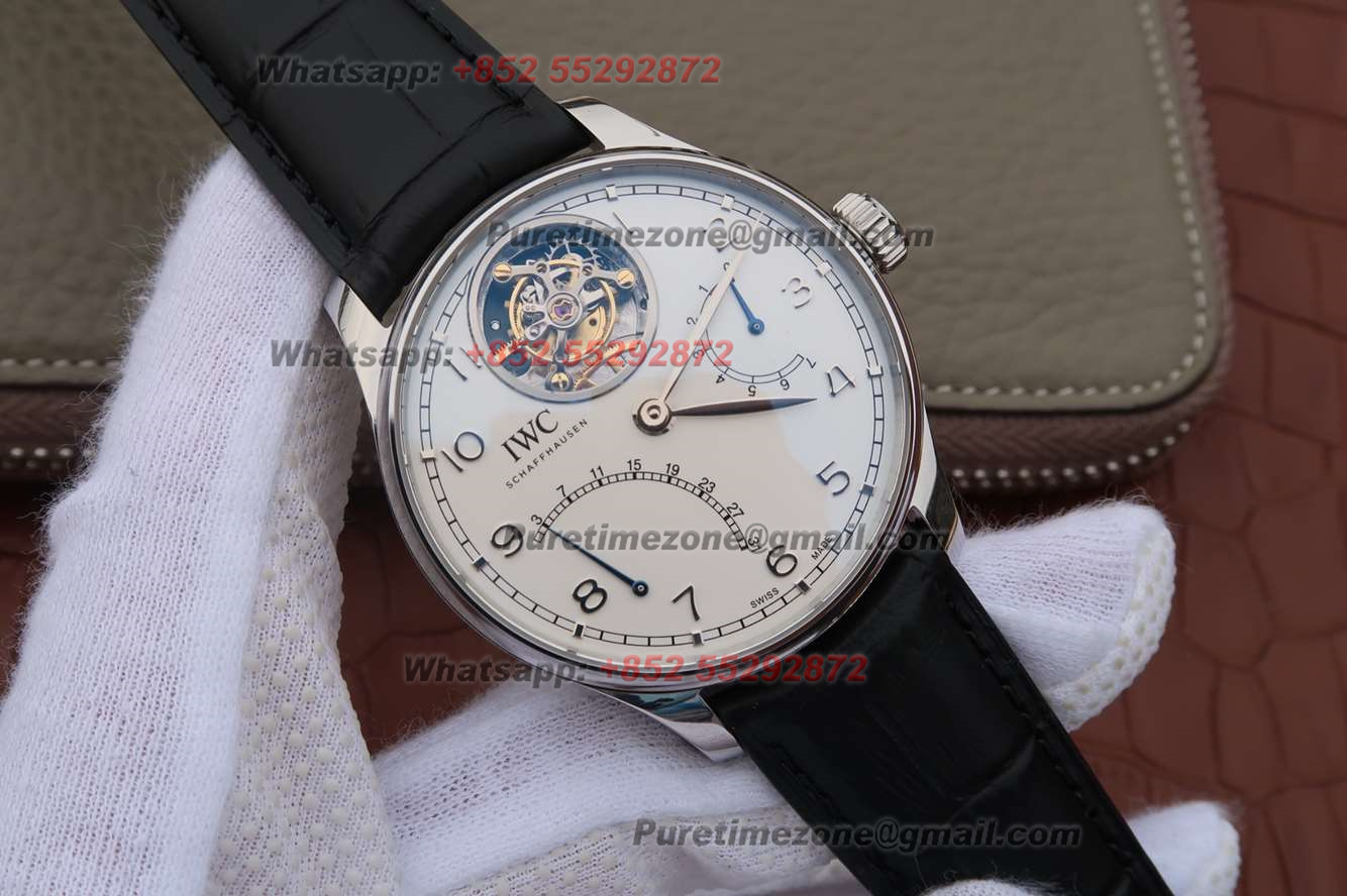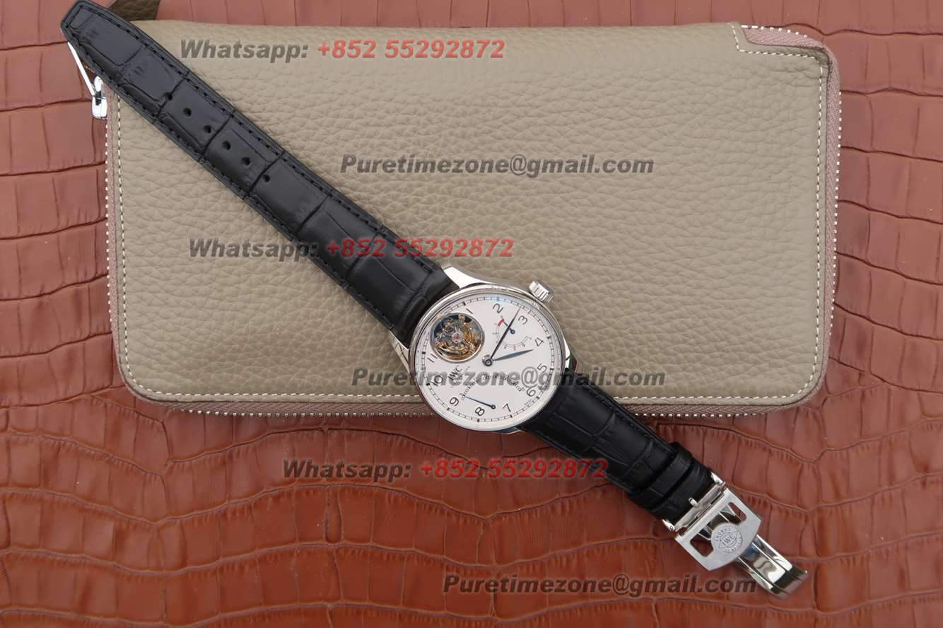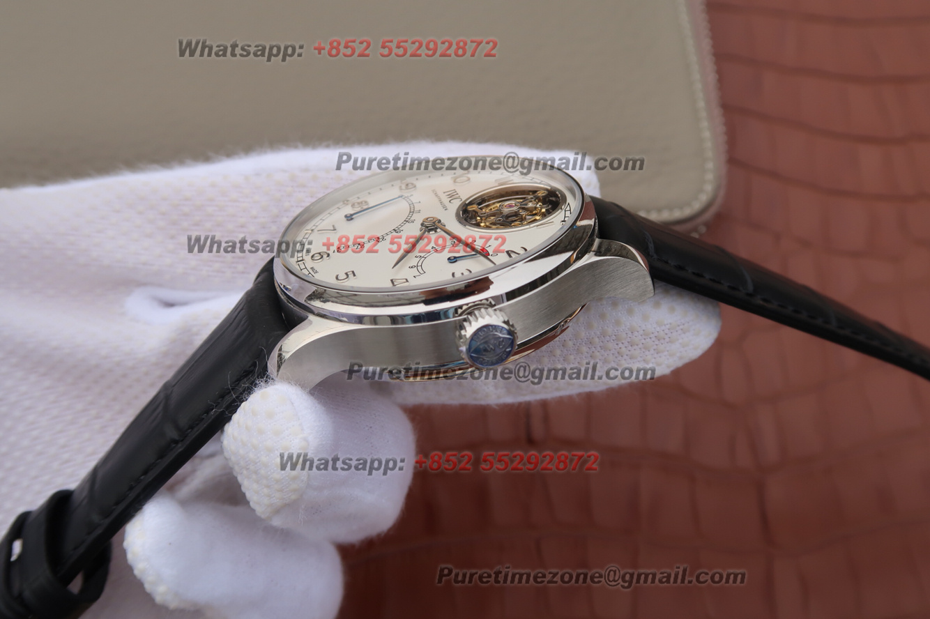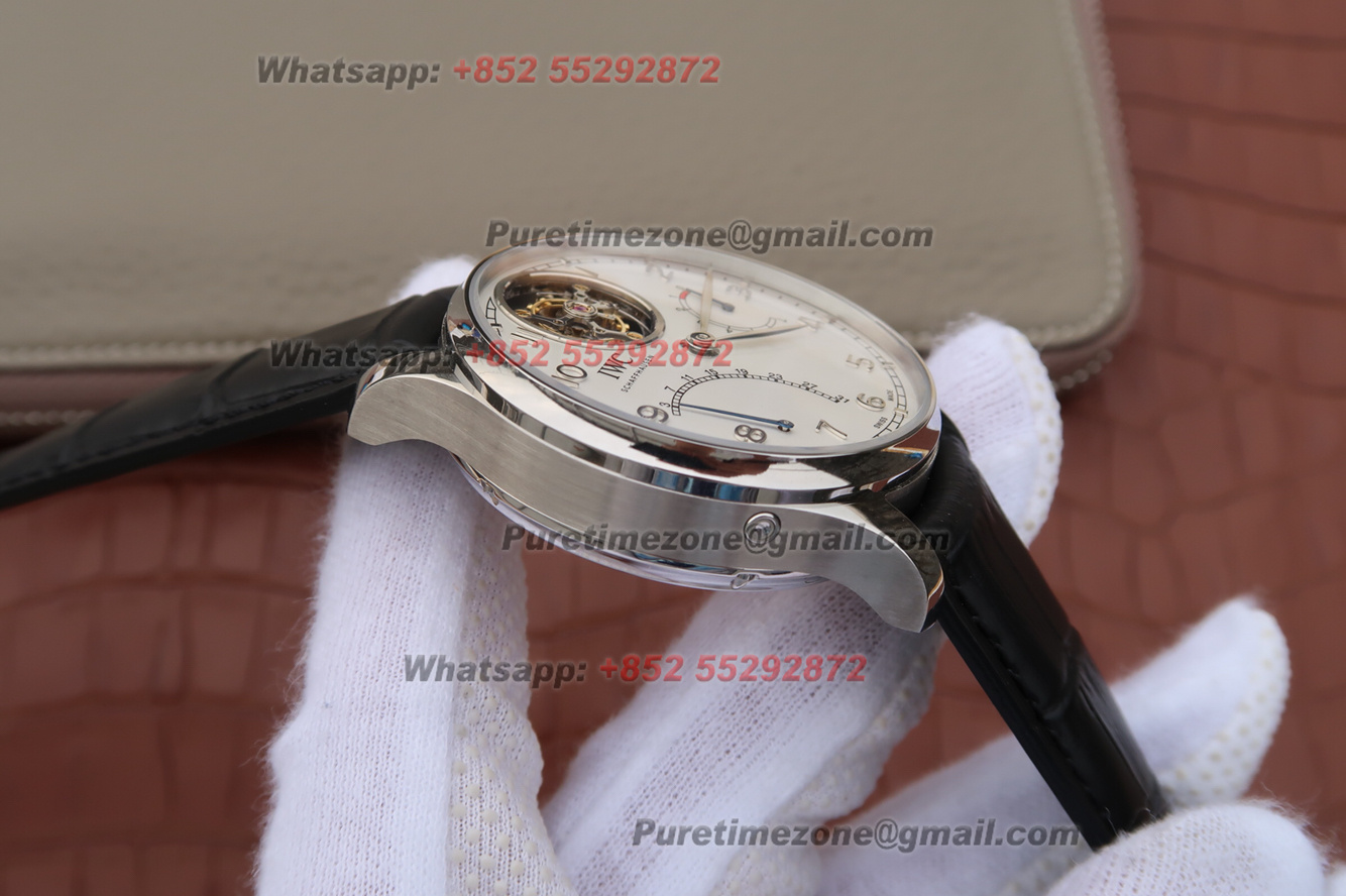 Portuguese Tourbillon IW504601 Mystere Retrograde Automatic Mens Watch Super Clone AZF White Dial Black Leather Strap