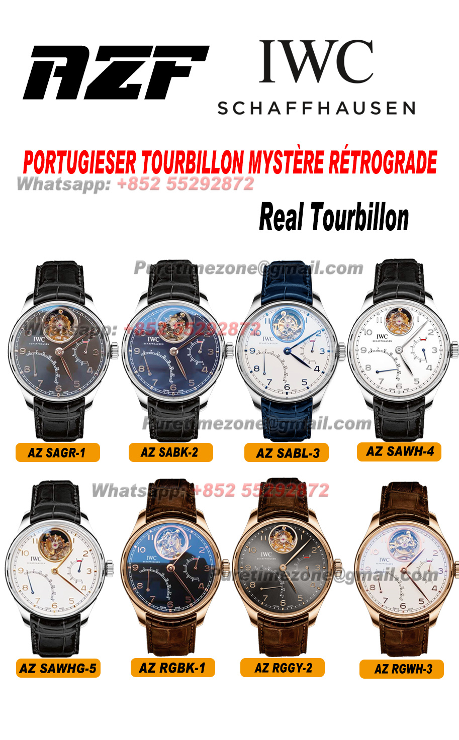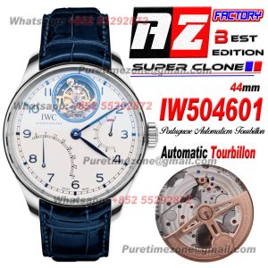 Portuguese Tourbillon IW504601 Mystere Retrograde Automatic Mens Watch Super Clone AZF White Dial Blue Leather Strap $1,500.00 $1,300.00