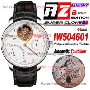 Portuguese Tourbillon IW504601 Mystere Retrograde Automatic Mens Watch Super Clone AZF White Dial Black Leather Strap $1,500.00 $1,300.00
