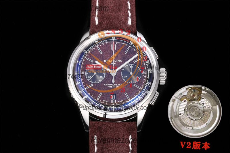 Premier B01 AB0118 A7750 Automatic Chronograph Mens Watch Best Edition BLSF Blue Dial Blue Leather Strap V2