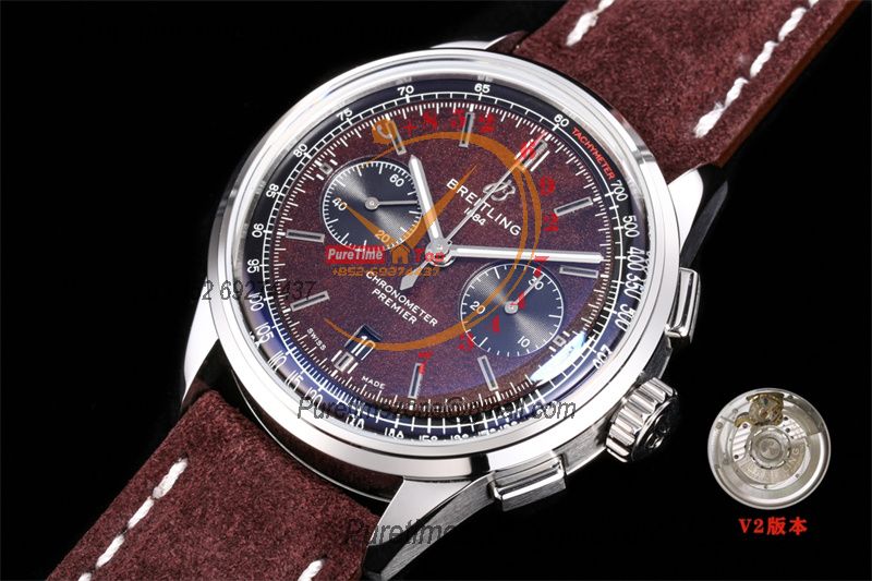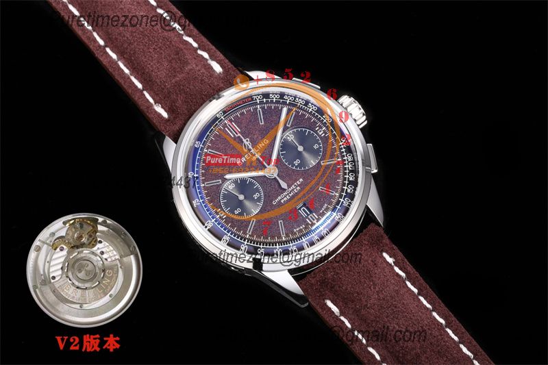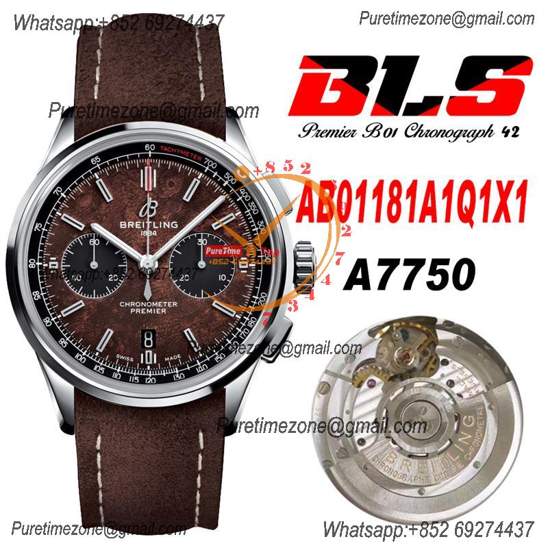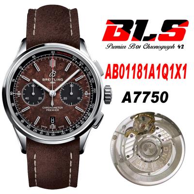 Premier B01 AB0118 A7750 Automatic Chronograph Mens Watch BLSF 42 Bentley Racing Brown Dial Leather Strap Best Edition
