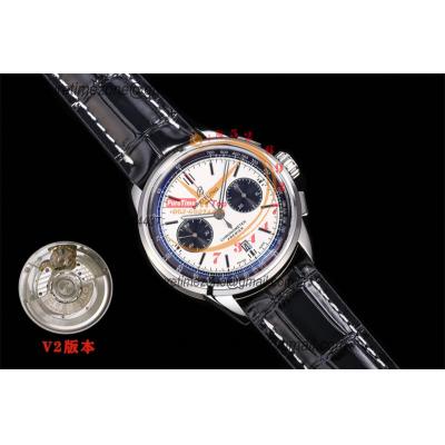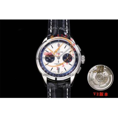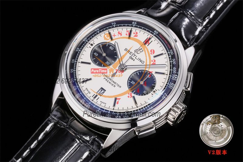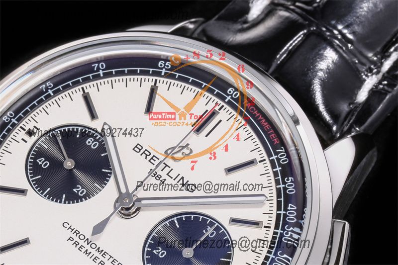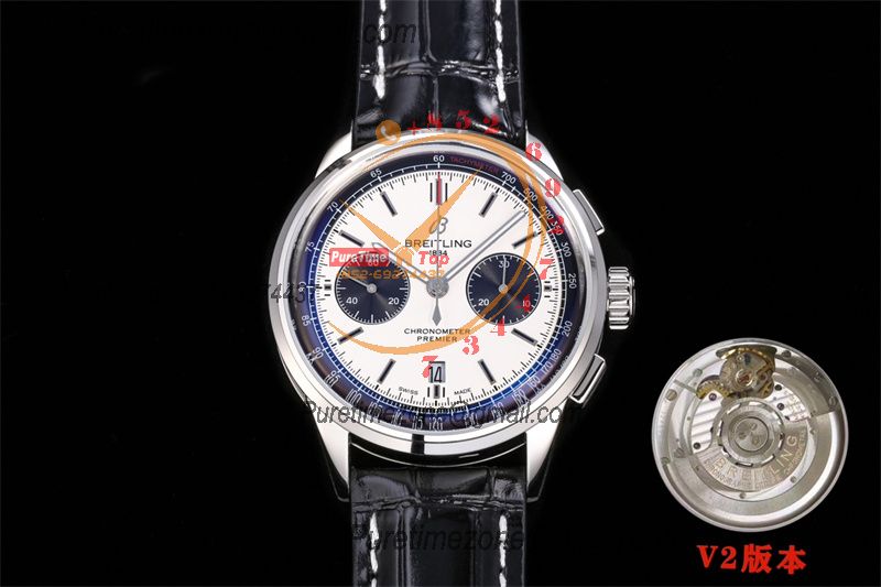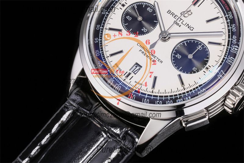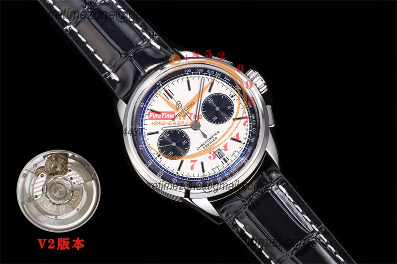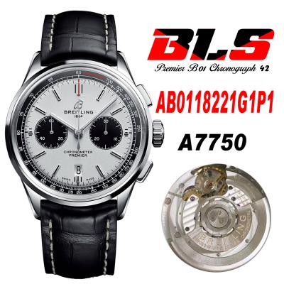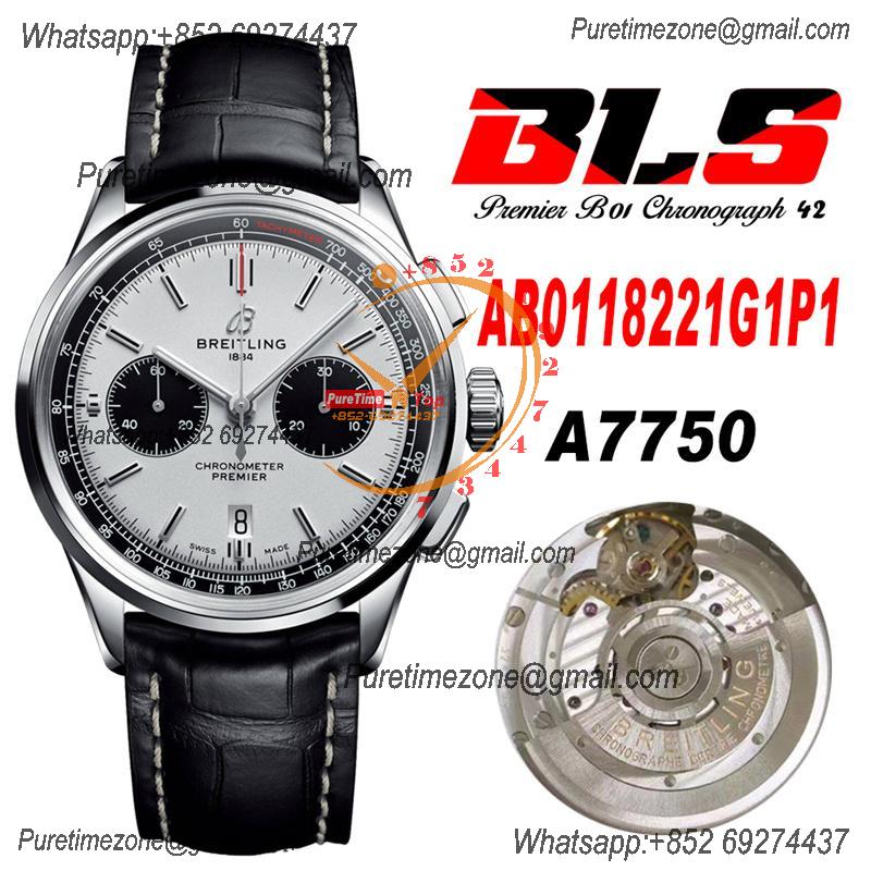 Premier B01 AB0118 A7750 Automatic Chronograph Mens Watch Best Edition BLSF White Pands Dial Black Leather Strap V2