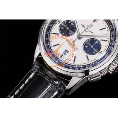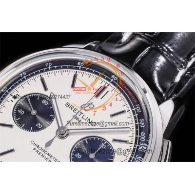 Home Breitling Premier Premier B01 AB0118 A7750 Automatic Chronograph Mens Watch Best Edition BLSF White Pands Dial Black Leather Strap V2