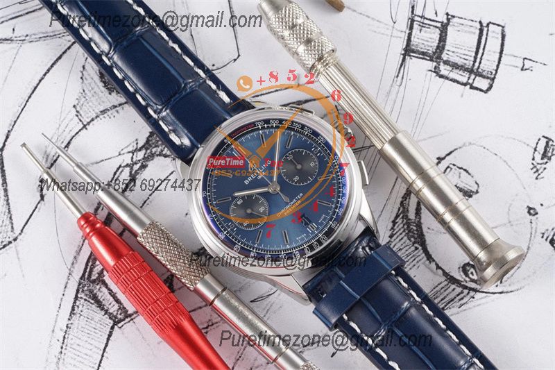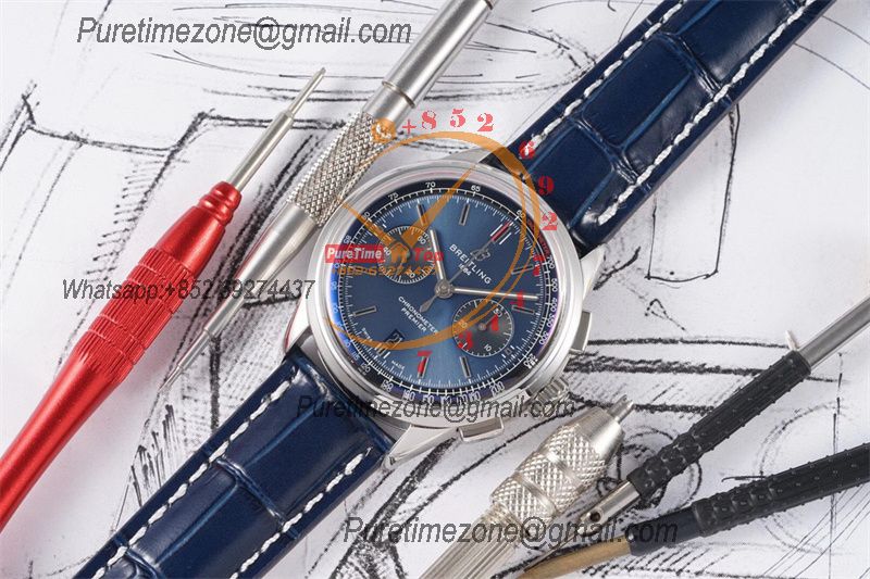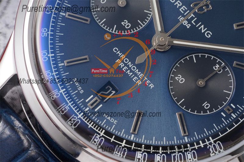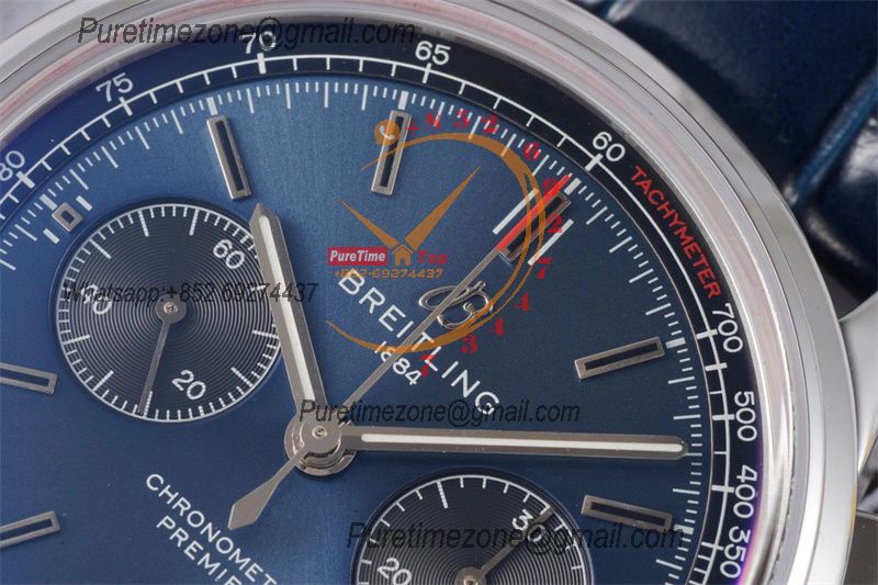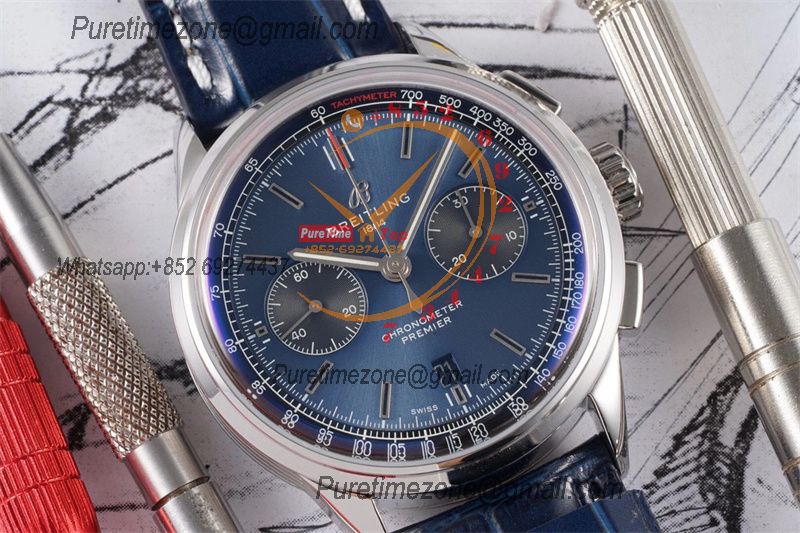Premier B01 A13315351 A7750 Automatic Chronograph Mens Watch BLSF 42 Bentley Racing Blue Dial Leather Best Edition
