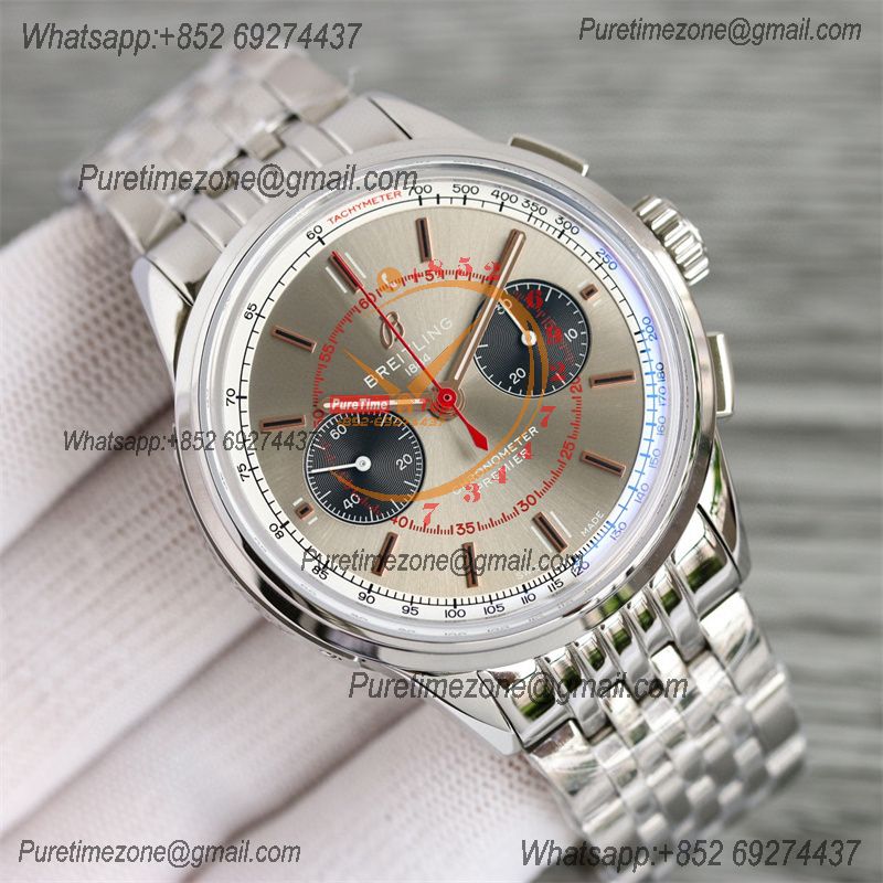 Home Breitling Premier Premier B01 AB0118 A7750 Automatic Chronograph Mens Watch BLSF 42 Bentley Racing Gray Dial SS Bracelet Best Edition