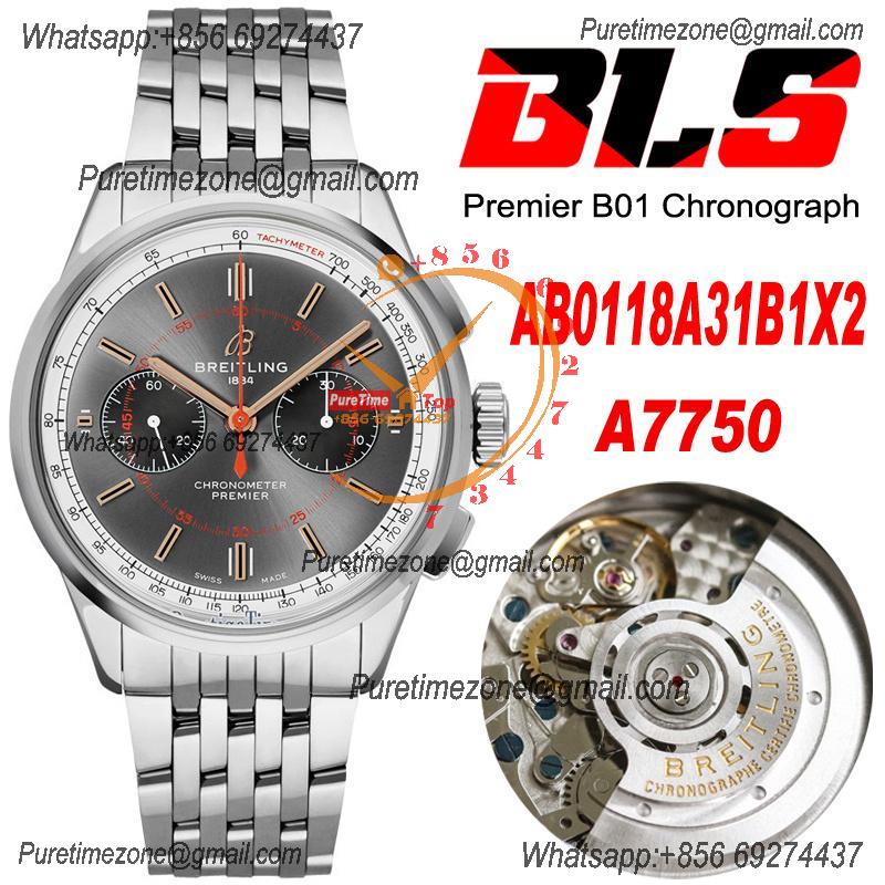 Premier B01 AB0118 A7750 Automatic Chronograph Mens Watch BLSF 42 Bentley Racing Gray Dial SS Bracelet Best Edition