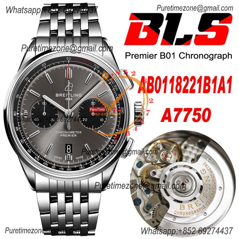 Premier B01 AB0118 A7750 Automatic Chronograph Mens Watch BLSF 42 Bentley Racing Gray Dial SS Bracelet Best Edition