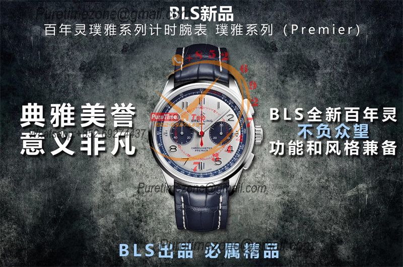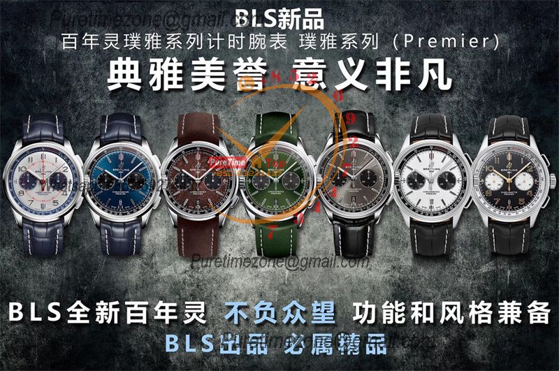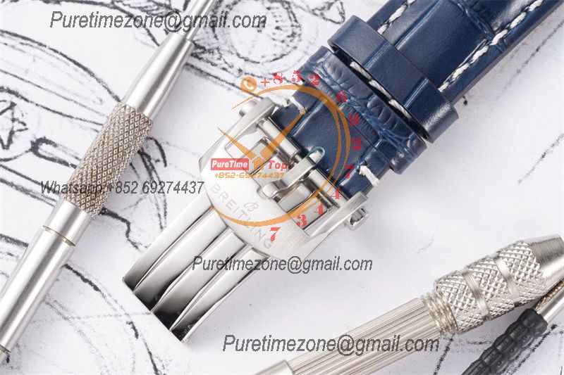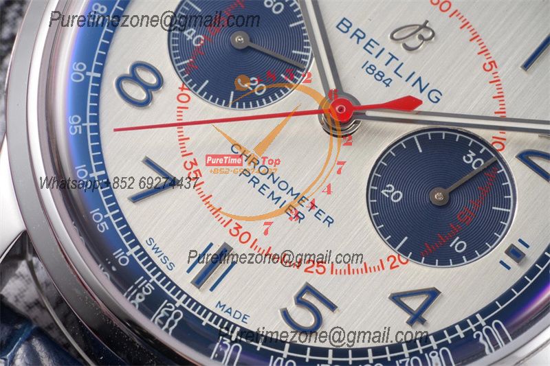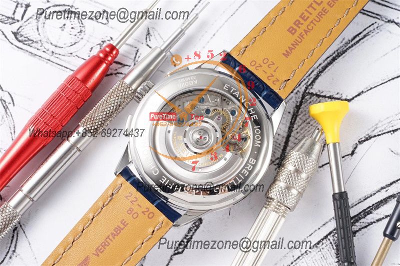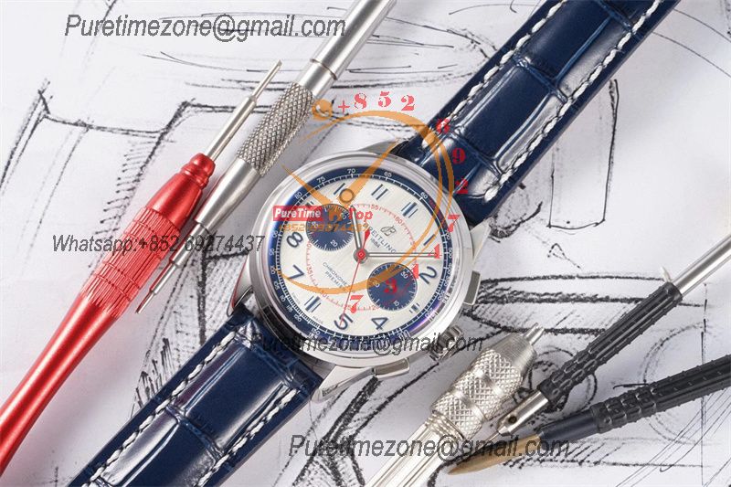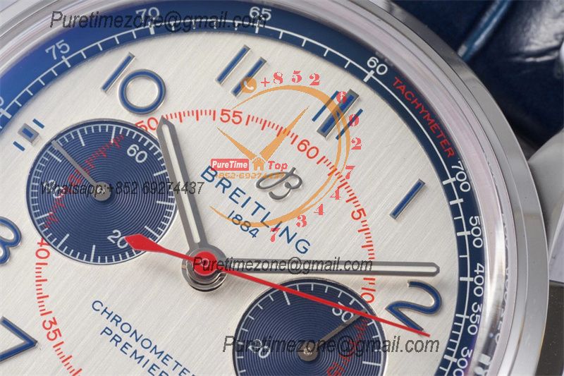 Premier B01 AB0118 A7750 Automatic Chronograph Mens Watch Best Edition BLSF Blue Dial Blue Leather Strap V2