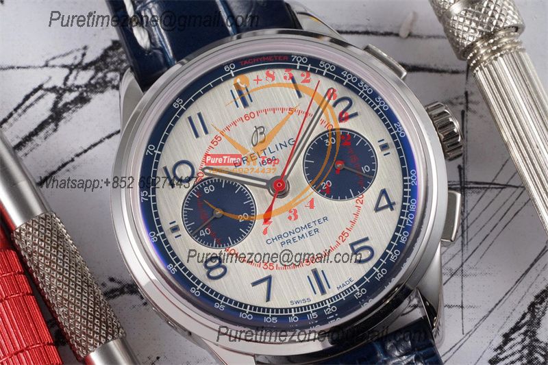 Home Breitling Premier Premier B01 AB0118 A7750 Automatic Chronograph Mens Watch BLSF 42 Bentley Racing Silver Dial Leather Strap Best Edition