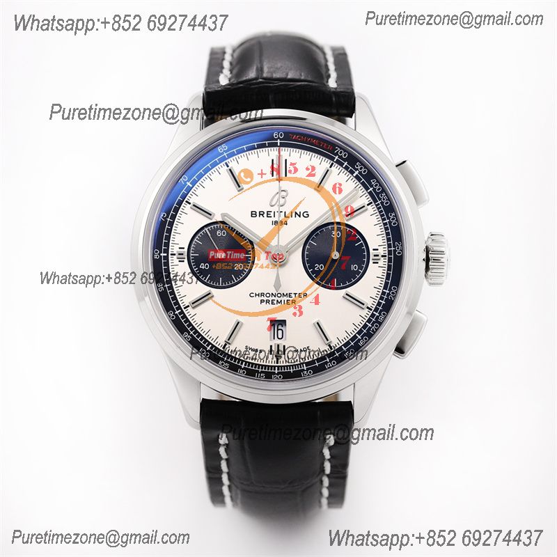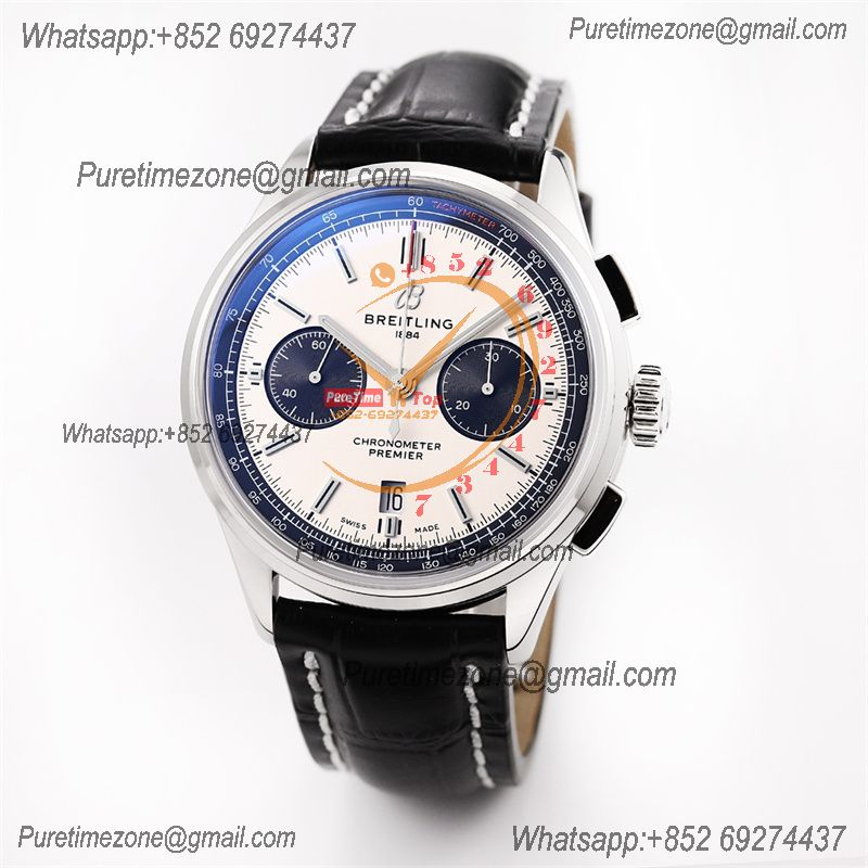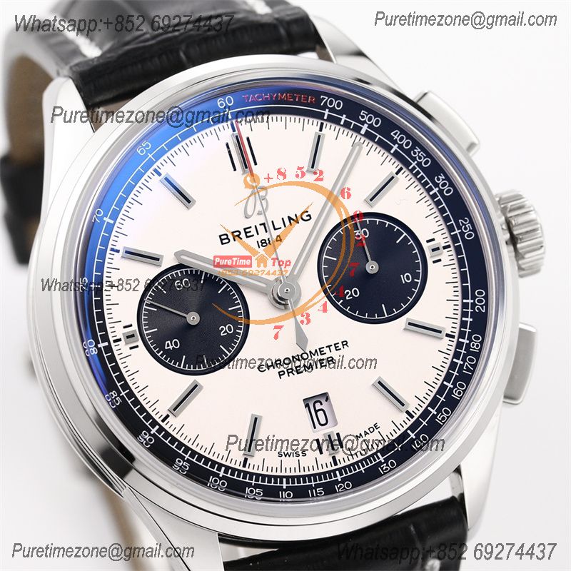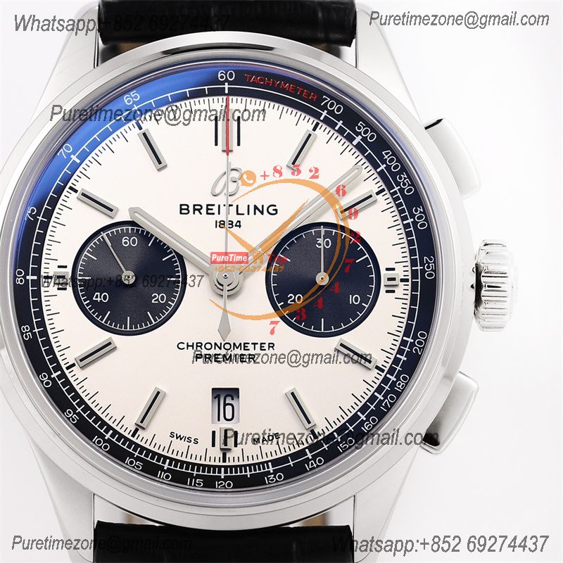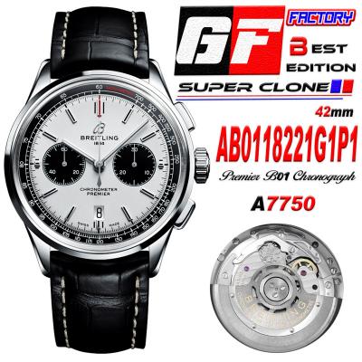 Premier B01 Chronograph 42 A7750 Automatic Mens Watch AB0118221G1P1 Best Edition GF V2 White Dial Leather CHS