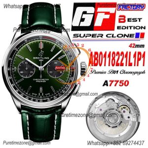 Premier B01 Chronograph 42 A7750 Automatic Mens Watch AB0118221L1P1 Best Edition GF V2 Green Dial Leather CHS $705.00 $470.00