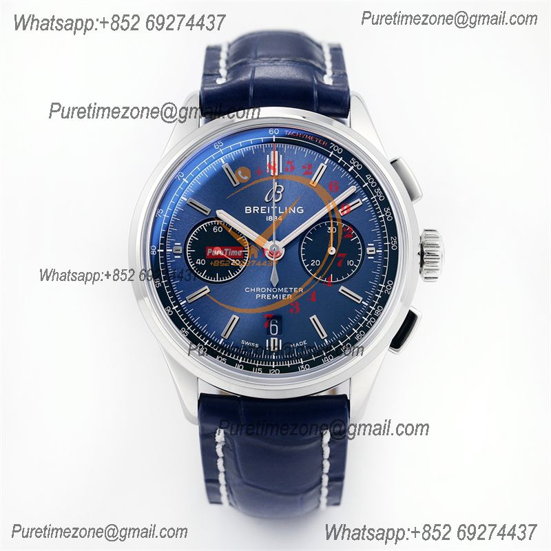 Premier B01 A13315351 A7750 Automatic Chronograph Mens Watch BLSF 42 Bentley Racing Blue Dial Leather Best Edition