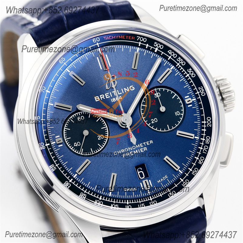 Home Breitling Premier Premier B01 Chronograph 42 A7750 Automatic Mens Watch AB0118A61C1P1 Best Edition GF V2 Blue Dial Leather CHS