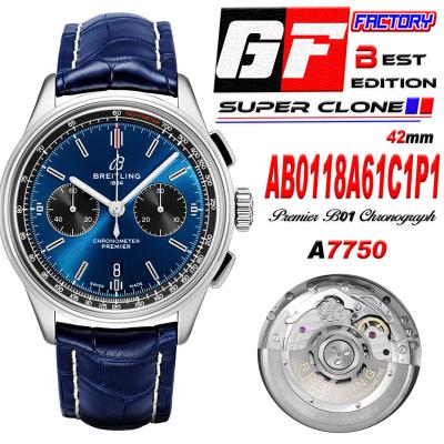 Premier B01 Chronograph 42 A7750 Automatic Mens Watch AB0118A61C1P1 Best Edition GF V2 Blue Dial Leather CHS
