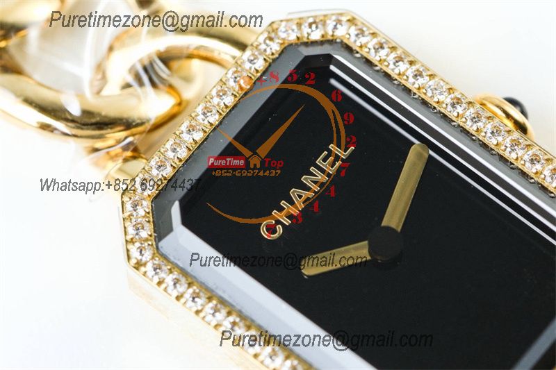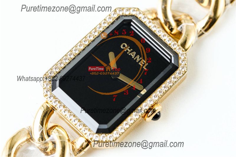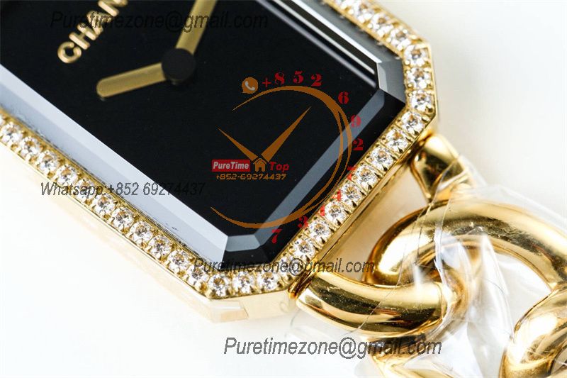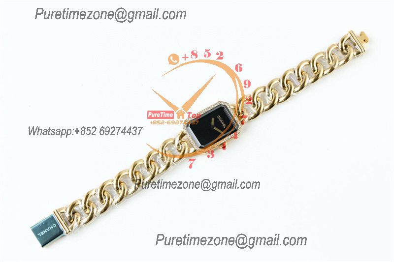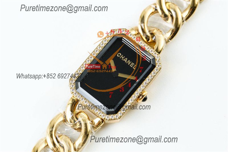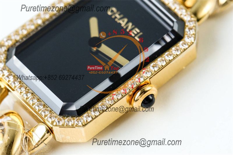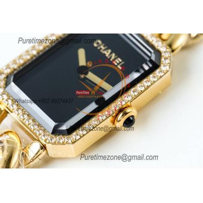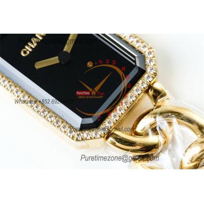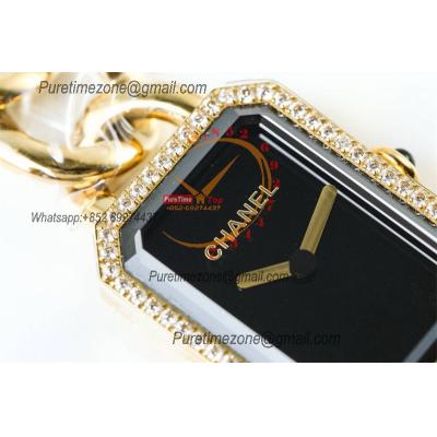 Home Chanel Premiere H3256 Swiss Quartz Womens Watch Best Edition BVF YG Diamonds Bezel Black Dial SS Bracelet Ladies