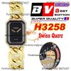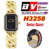Premiere H3256 Swiss Quartz Womens Watch Best Edition BVF Yellow Gold Black Dial SS Bracelet Ladies