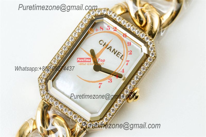 Home Chanel Premiere H3256 Swiss Quartz Womens Watch Best Edition BVF YG Diamonds Bezel MOP Dial SS Bracelet Ladies