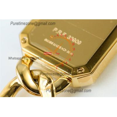 Premiere H0451 Swiss Quartz Womens Watch Best Edition BVF Yellow Gold Black Dial Interwoven Leahter Strap Ladies