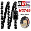 Premiere H3749 Swiss Quartz Womens Watch Best Edition BVF Steel Case Black Dial Interwoven Leahter Strap Ladies