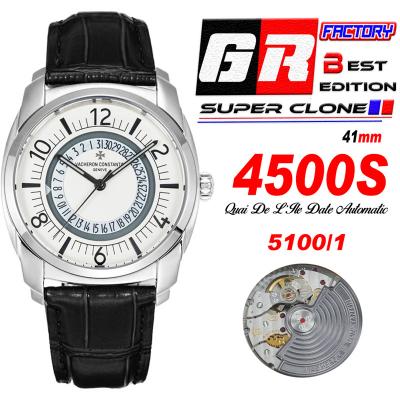 Home Vacheron Constantin Overseas Quai De L’ile 4500S A5100 Automatic Mens Watch Best Edition GRF White Dial Black Leather Strap CHS