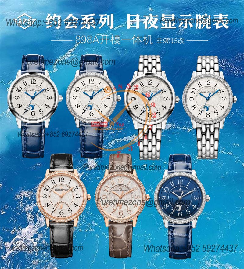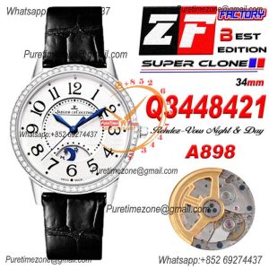 Rendez-Vous Night & Day Q3448410 A898 Moon Phase Automatic Womens Watch Best Edition ZF 34 Steel White Dial Leather