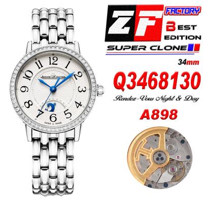 Home Jaeger-LeCoultre Rendez Vous Rendez-Vous Night & Day Q3468130 A898 Moon Phase Automatic Womens Watch Best Edition ZF 34 Diamond Bezel White Dial SS