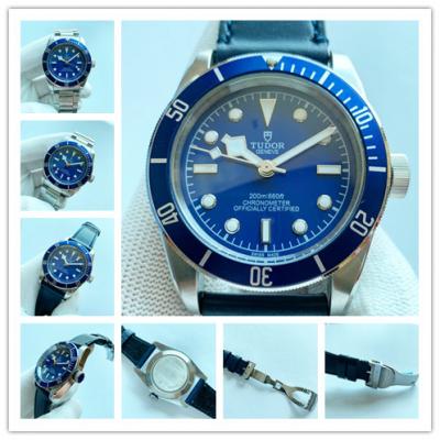 Home AAA-Brand Replica Black Bye A21j Automatic Movement Mens Watch Blue Dial Leather Strap E44