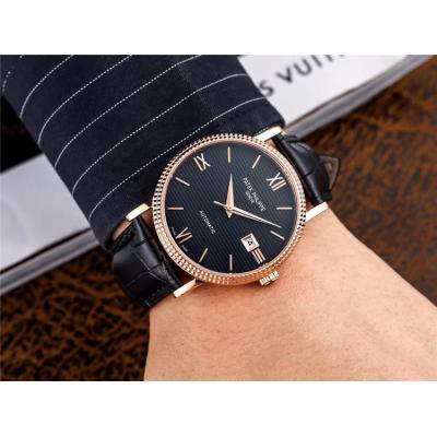 Home AAA-Brand Replica Calatrava A21j Automatic Movement Mens Watch Black Dial Leather Strap E77