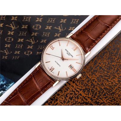 Replica Calatrava A21j Automatic Movement Mens Watch Black Dial Leather Strap E77