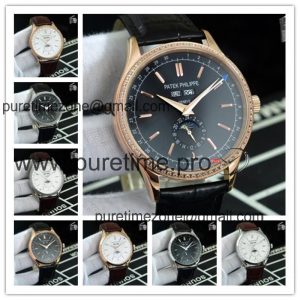 Replica Calatrava A21j Automatic Movement Mens Watch Black Dial Leather Strap E77