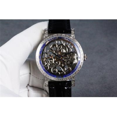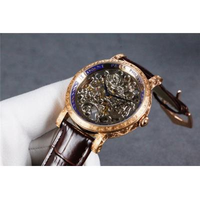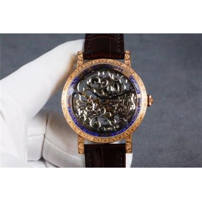Replica Calatrava A21j Automatic Movement Mens Watch Skeleton Dial Leather Strap E41