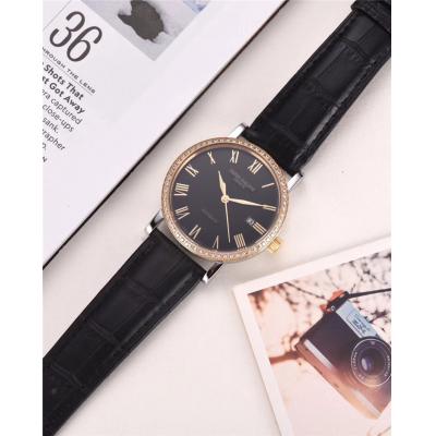 Replica Calatrava A21j Automatic Movement Mens Watch Black Dial Diamonds Case Leather Strap B E10 $156.00 $130.00
