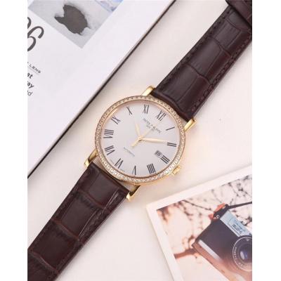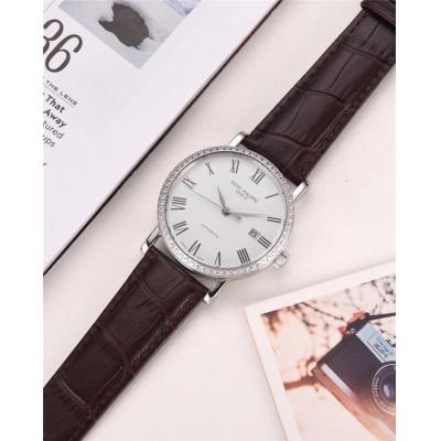 Home AAA-Brand Replica Calatrava A21j Automatic Movement Mens Watch White Dial Diamonds Case Leather Strap A E10