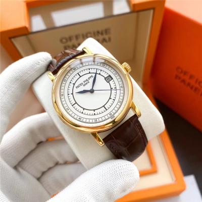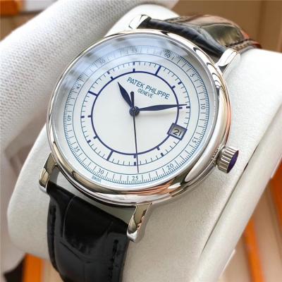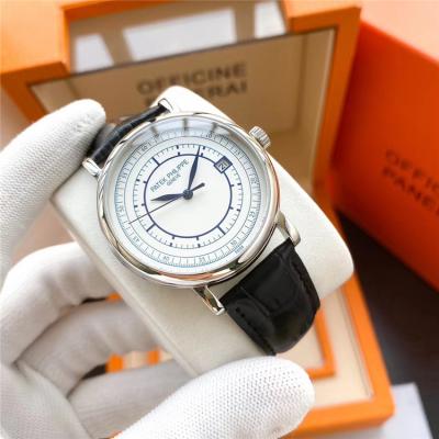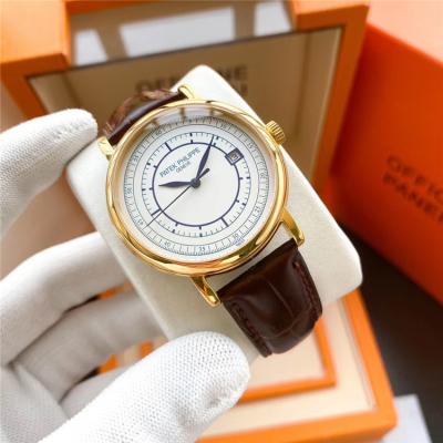 Home AAA-Brand Replica Calatrava Japan Miyota 8215 Automatic Movement Mens Watch White Dial Leather Strap E133