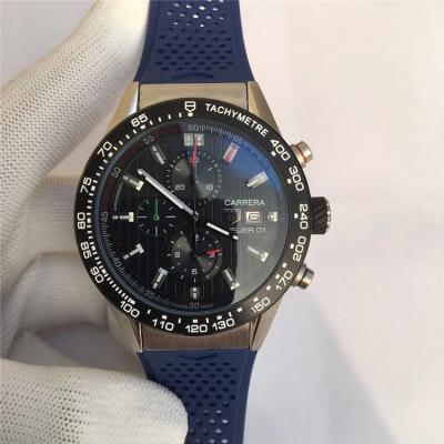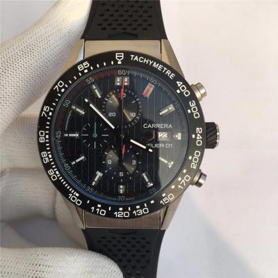 Replica Carrera Japan Quartz chronograph Mens Watch Black Dial Rubber Strap