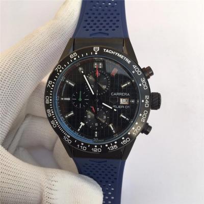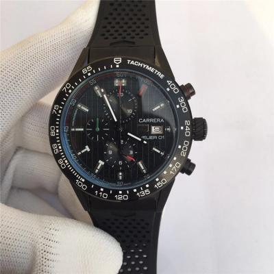 Home AAA-Brand Replica Carrera Japan Quartz chronograph Mens Watch Black Dial Rubber Strap