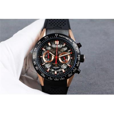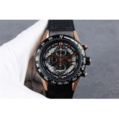 Replica Carrera Quartz chronograph Mens Watch skeleton Dial rubber strap