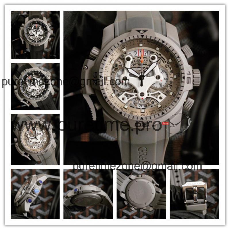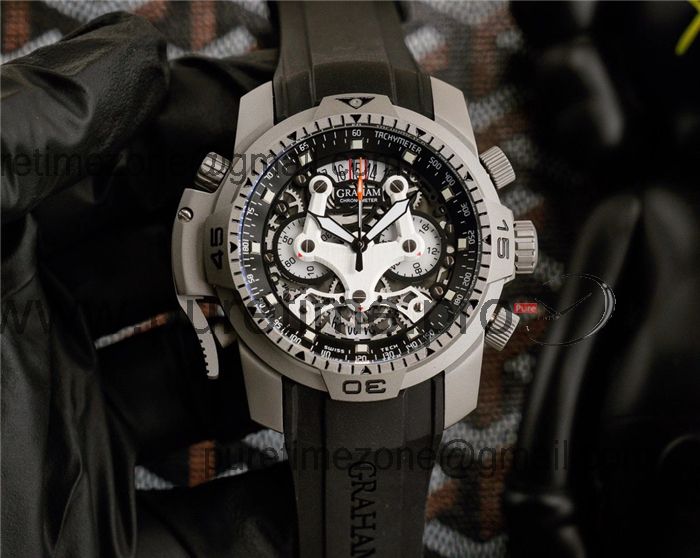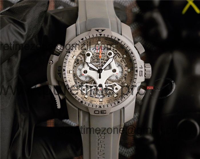 Replica Chronofighter Japan Quartz Chronograph Mens Watch Skeleton Dial SS Gray Rubber Strap