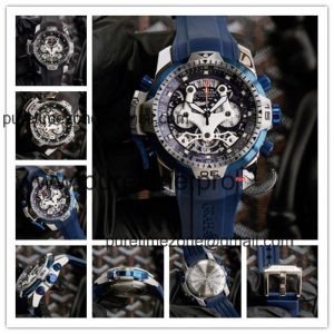 Replica Chronofighter Japan Quartz Chronograph Mens Watch Skeleton Dial SS Blue Rubber Strap