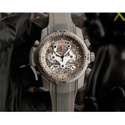 Home AAA-Brand Replica Chronofighter Japan Quartz Chronograph Mens Watch Skeleton Dial SS Gray Rubber Strap