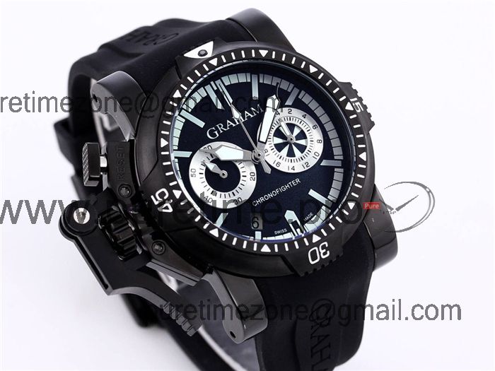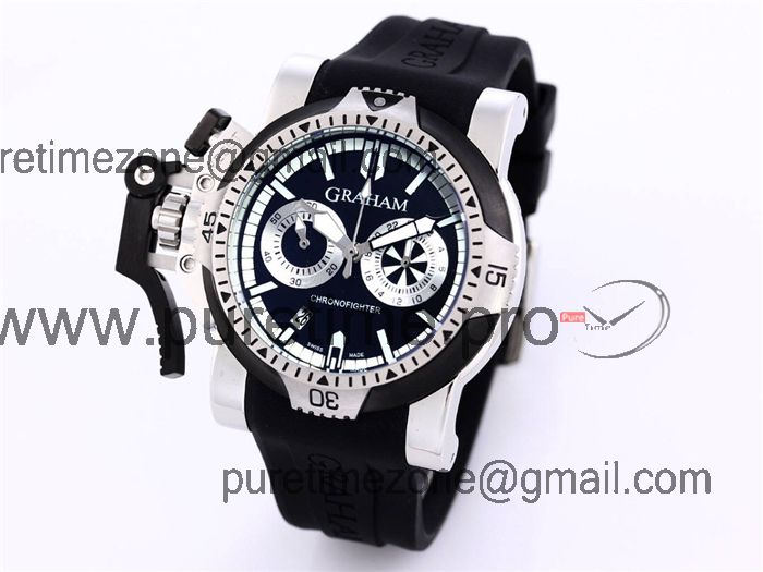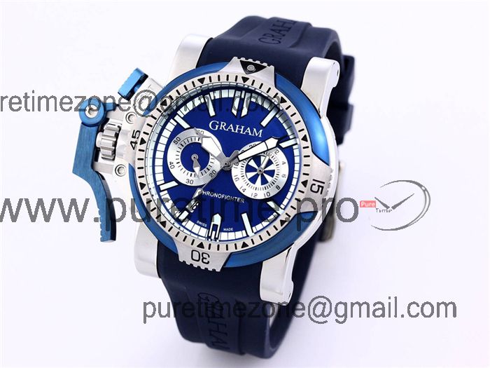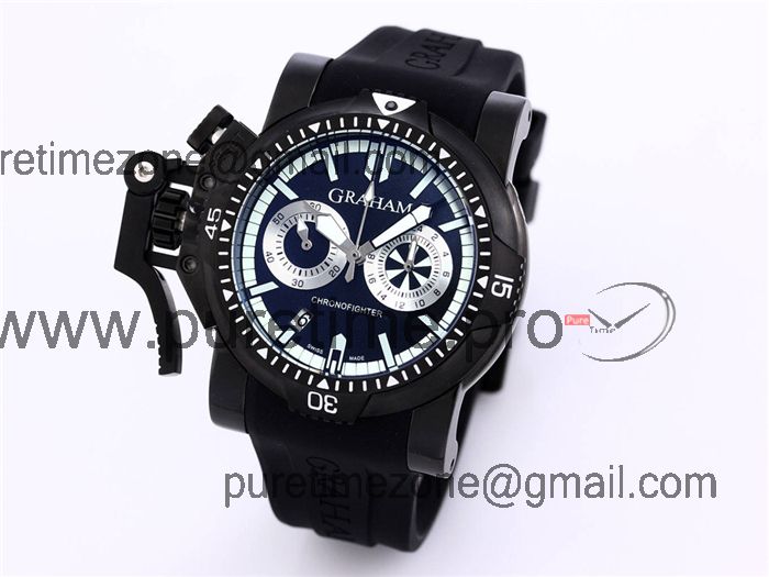Replica Chronofighter Left Hand Japan Quartz Chronograph Mens Watch Blue Dial Rubber Strap