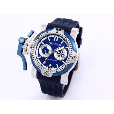 Replica Chronofighter Left Hand Japan Quartz Chronograph Mens Watch Blue Dial Rubber Strap