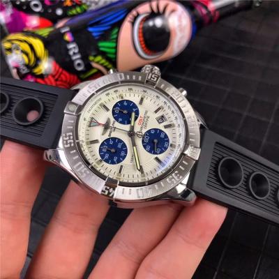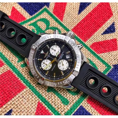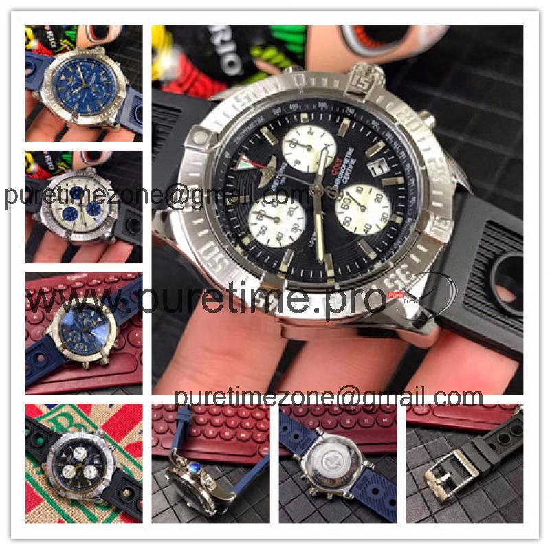 Home AAA-Brand Replica Chronomat Japan Quartz Chronograph Mens Watch Black Dial Rubber Strap C10