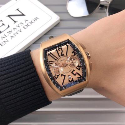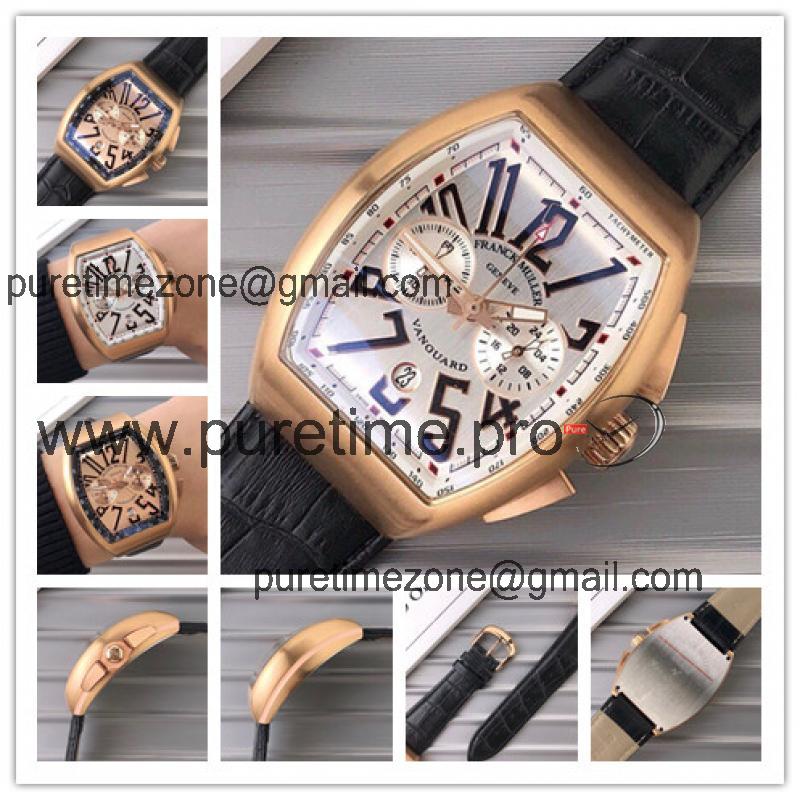 Replica Collection Japan Quartz Chronograph Movement Mens Watch Silver Dial Leather Strap E29